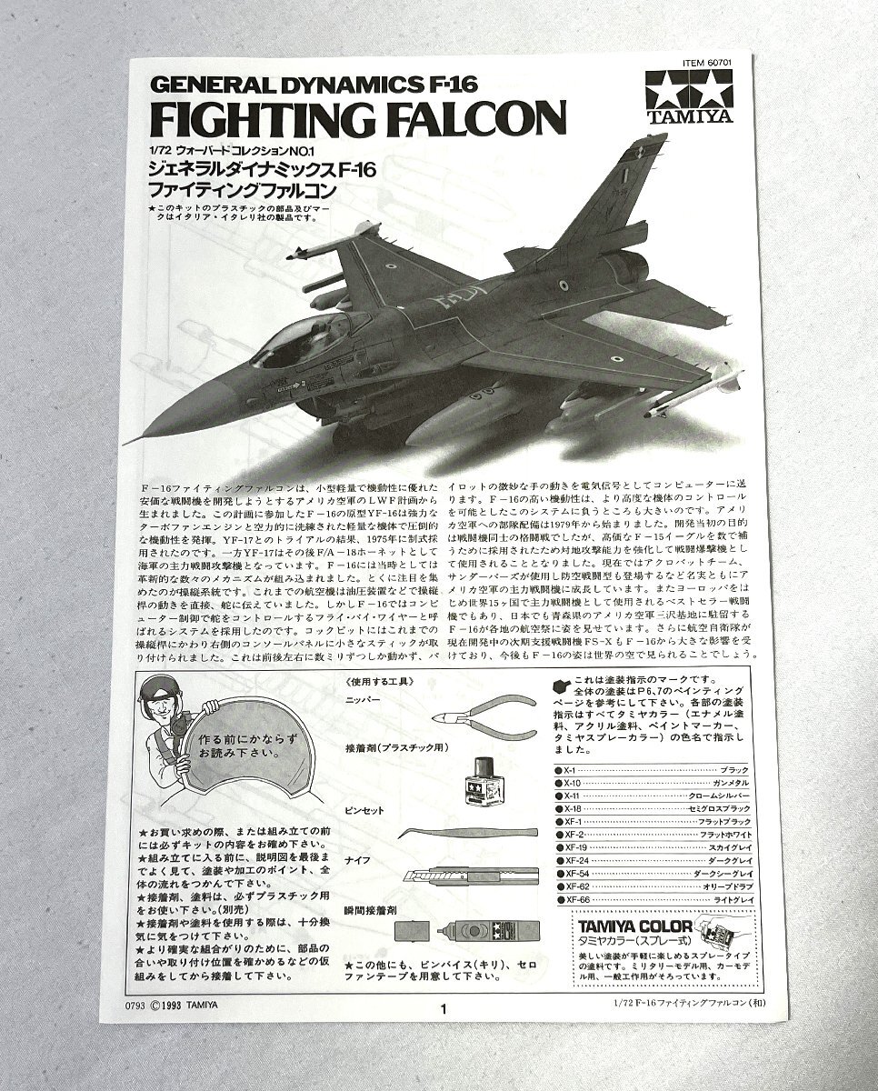 ▽TAMIYA 1/72 ジェネラルダイナミックス F-16 ファイティングファルコン プラモデル 未組立・現状品▽014016