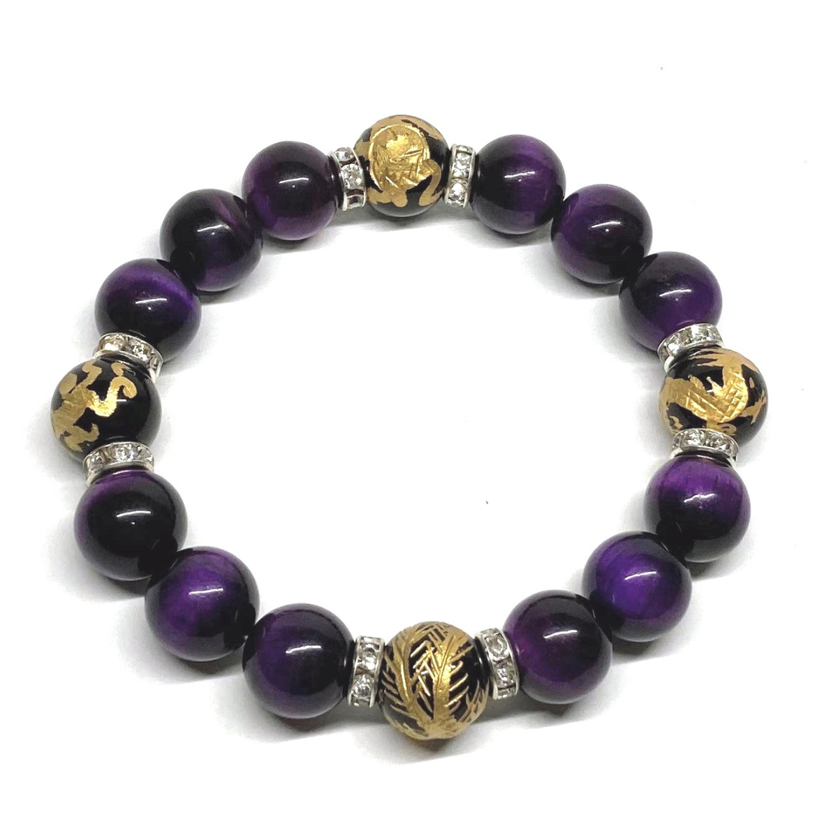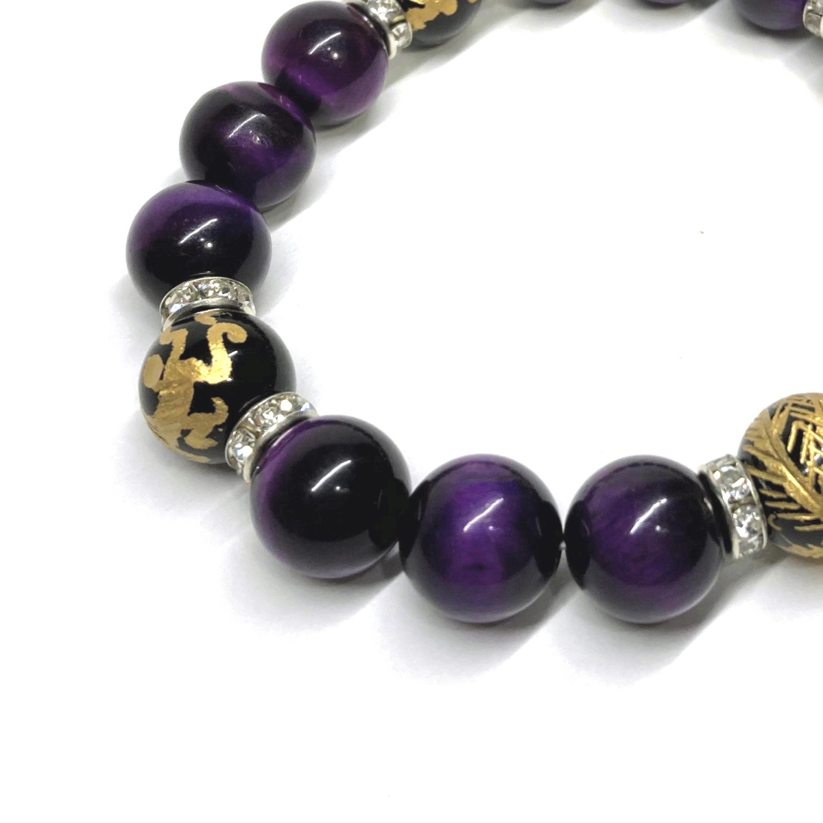 四神獣金彫オニキス×パープルタイガーアイ 12mm パワーストーン ブレスレット 天然石 青龍 白虎 玄武 朱雀 運気上昇 開運 金運 お守り S