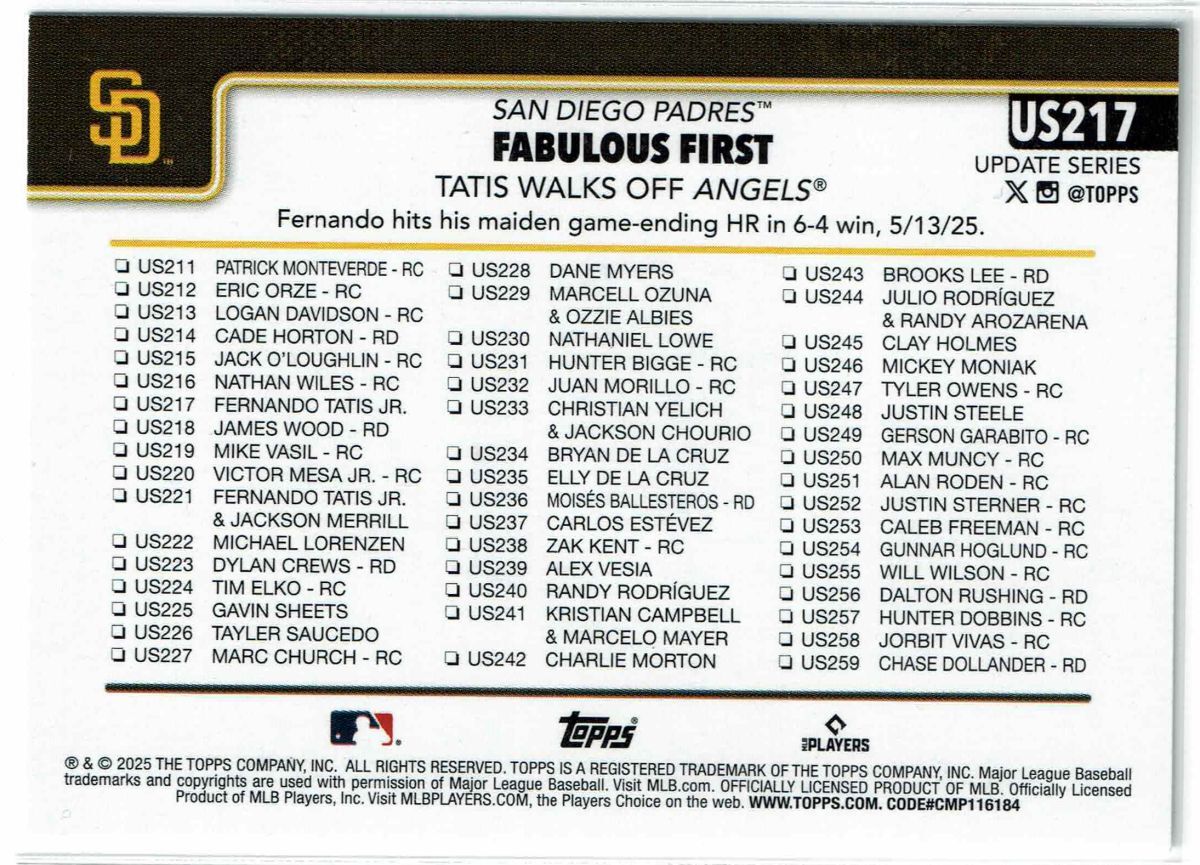 2025 Topps Update #US217 タティスジュニア Fernando Tatis Jr. Fabulous First - Padres パドレス