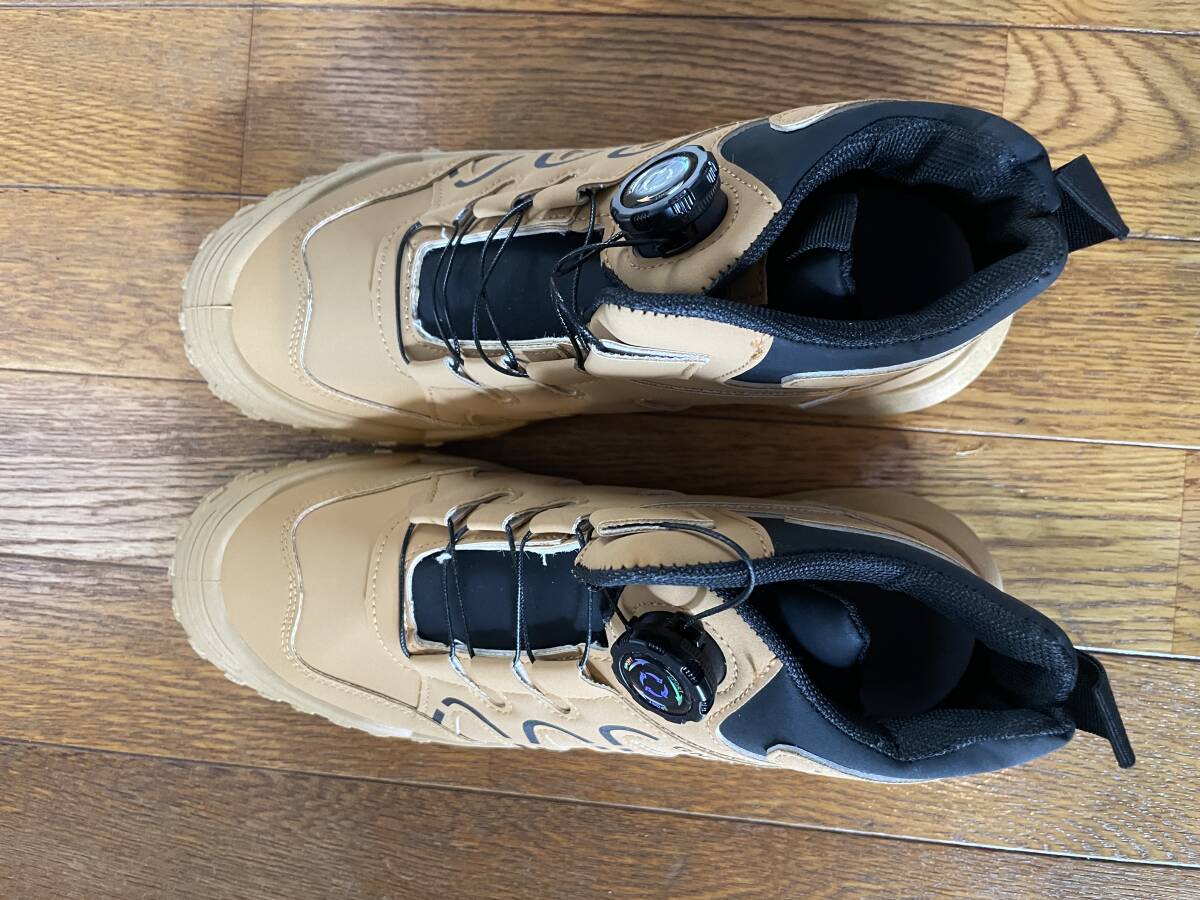 クイックシューレースで、ワンタッチで好みのタイトさに結束出来て、靴を脱いだり緩めるのもワンタッチです。