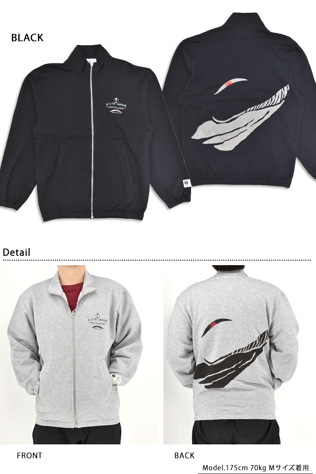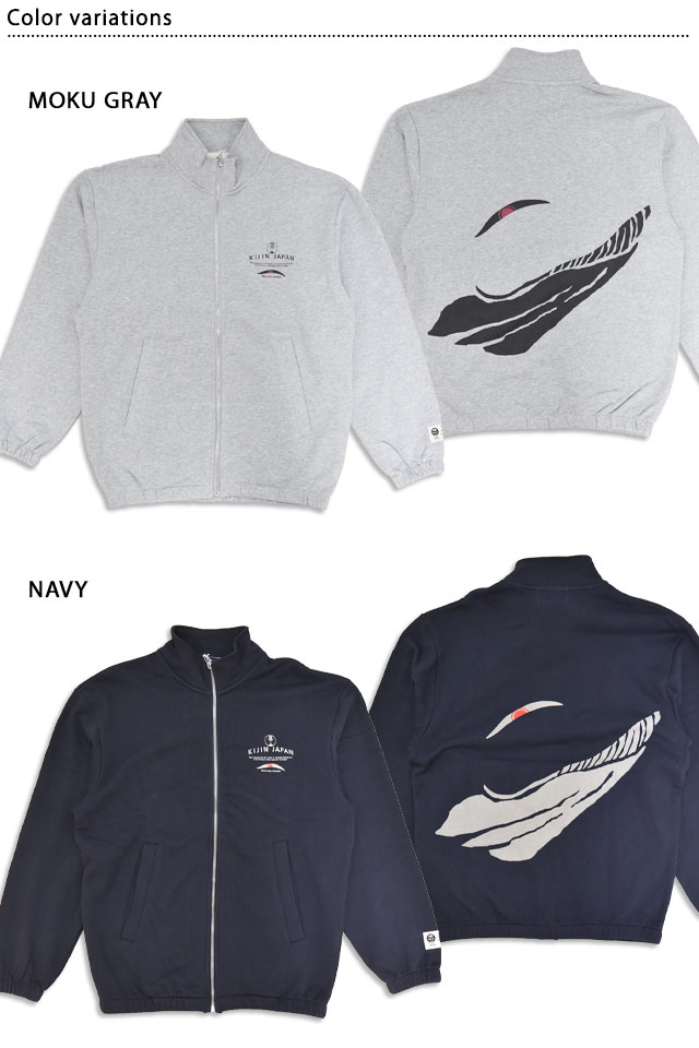 着た人、それを見た人が笑顔になれる、他にはないデザインを提供し続けている「喜人」さんから「目くじら裏毛ブルゾン(KJ-52503)」のご紹介です。 今の世の中、理不尽なことや頭にくること、イライラすること、ありますよね。 でもそんな時は深呼吸して、10秒間リラックス。 なるべく目くじら立てずに、このクジラさんのようにニヤリと微笑んで「まあいっか」って吹き飛ばしてやりましょう。 ボディーには厚手の裏毛生地を採用。 ちょっとレトロな形が懐かしい、スタンドブルゾンです。 袖にはピスネームを縫い付けました。 | ||||||||||||||||||||