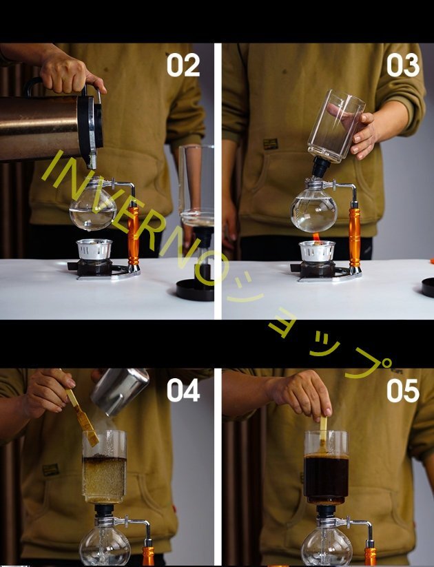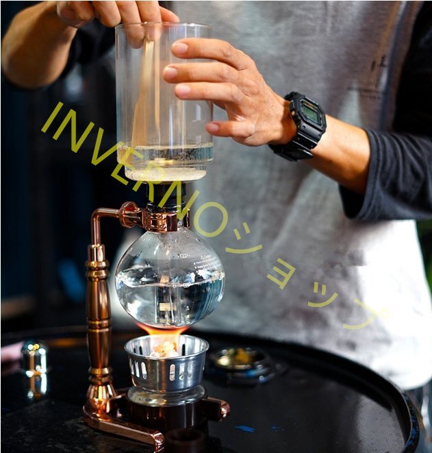 4. 1分が経ったら、アルコールランプを消します。コーヒーはゆっくりと上部のポットから下部のポットに戻ります。これで、1 ポットのコーヒーが完成です。