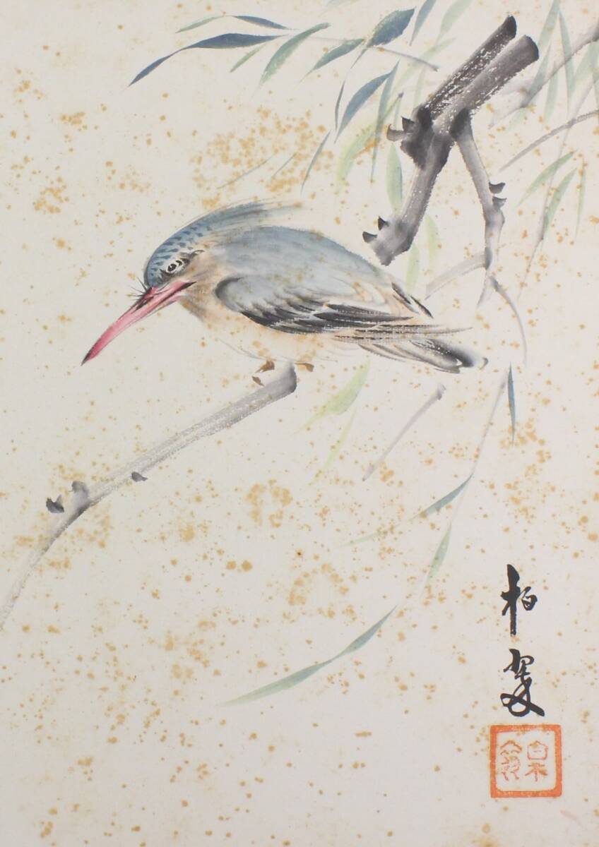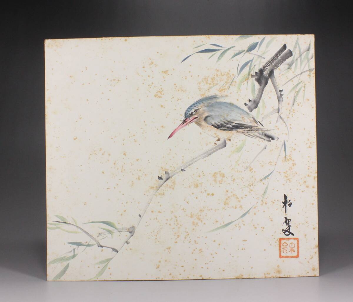 真作 直筆 色紙絵 彩色日本画 鳥 落款 茶道具 芸術 書