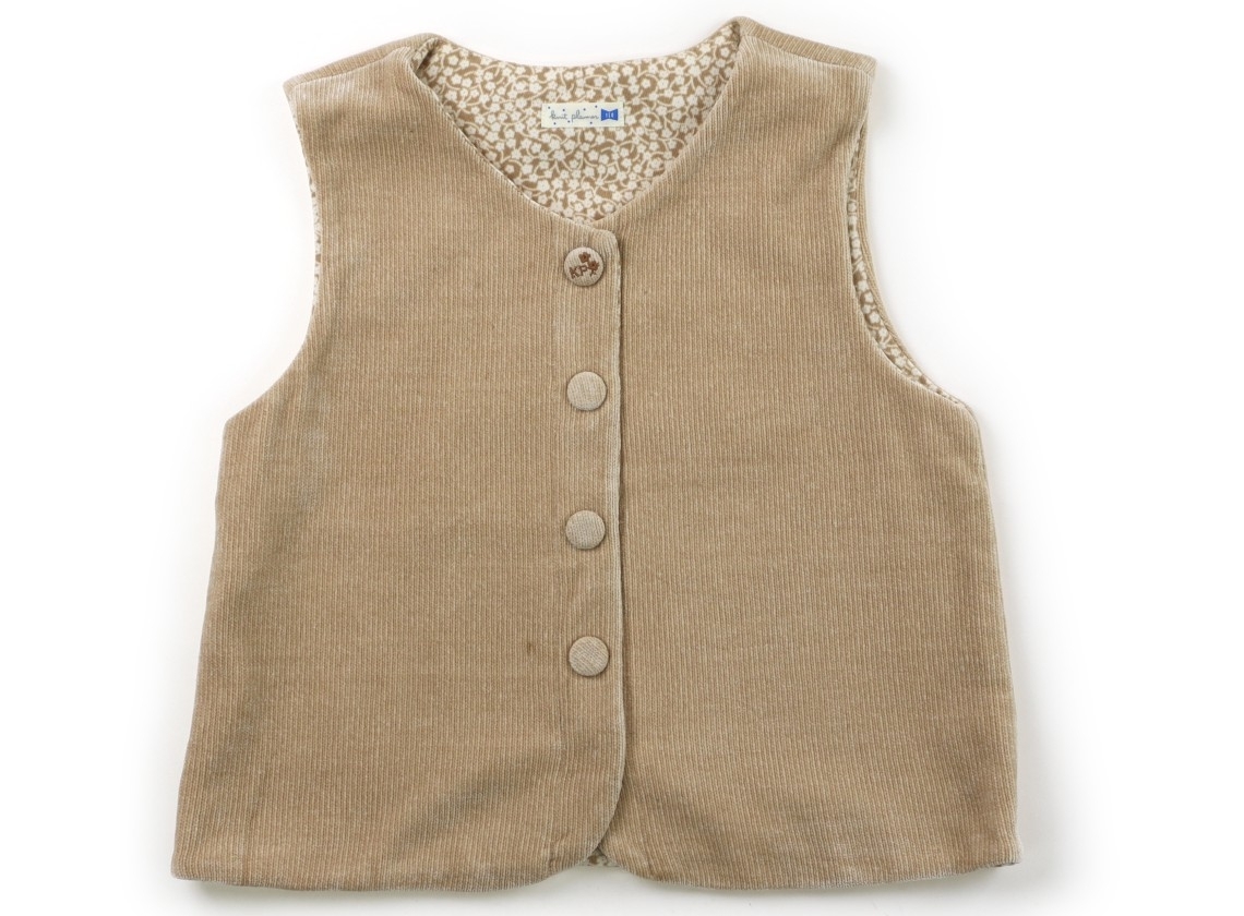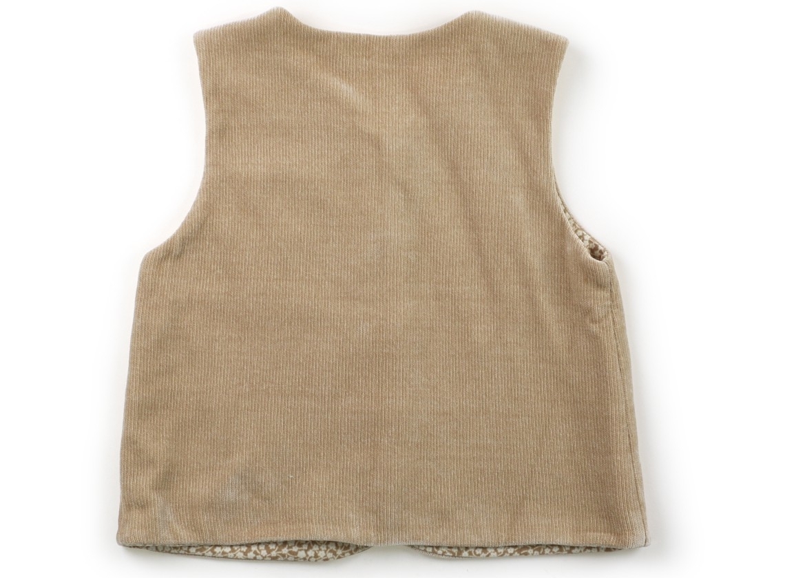 コーデュロイ素材。カットソー生地の裏地がついています。スナップボタン留め。若干毛羽立ちがあります。腹部に薄く茶色いシミがあります。やや使用感はありますが、まだまだ普段着として活躍してくれそうです。