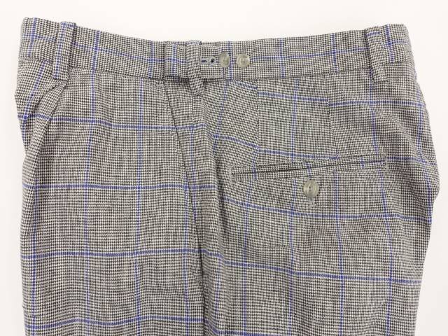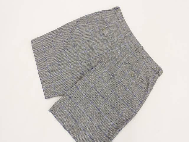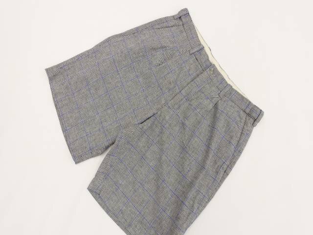 洗えるワンタックハーフパンツ M ブラック 千鳥格子/ブルー チェック柄