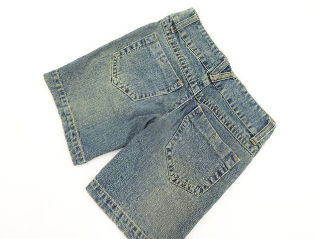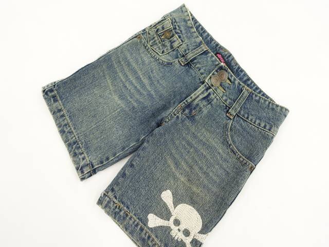 デニムショートパンツ ブルー地 ホワイト スカル柄