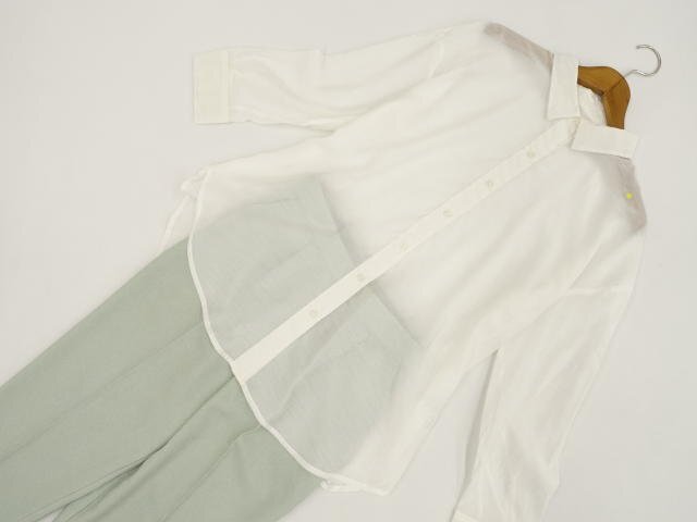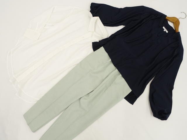 洗える長袖シフォンブラウス+長袖プルオーバーブラウス+テーパードパンツ コーディネート上下3点セット L相当 オフホワイト/ネイビー/ライトグリーン シンプル・きれいめ系 20代・30・ 40代