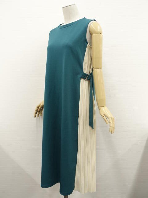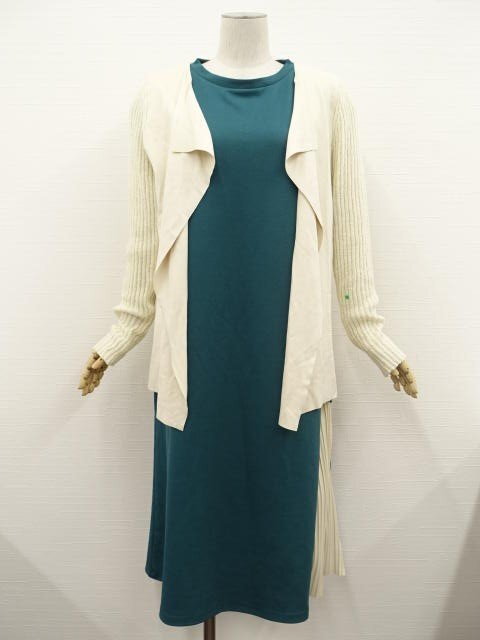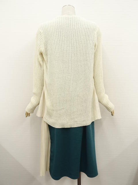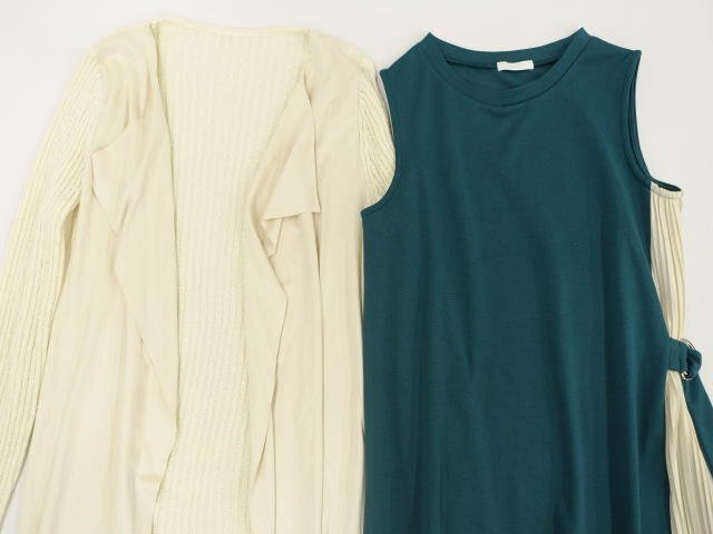 長袖ニットトッパーカーディガン+ロング丈ノースリーブワンピース コーディネート2点セット M相当 アイボリー/グリーン×アイボリー シンプル系 20代~30代~