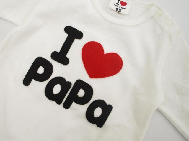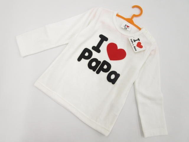 長袖 ラウンドネック トレーナー 95 ホワイト地 ブラック 英字&レッド ハート柄 【メール便可】