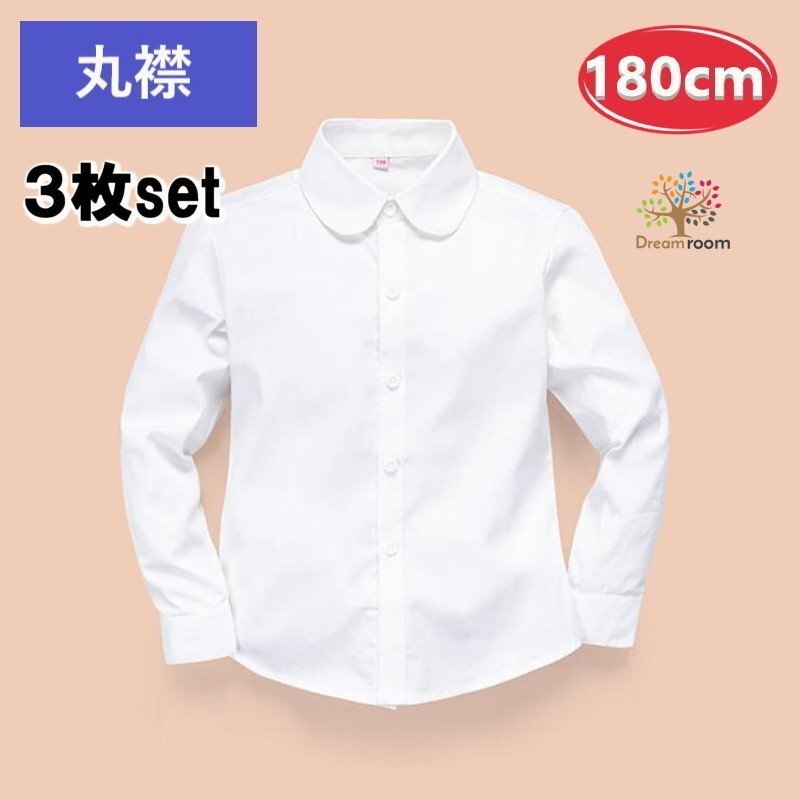 1スタ☆お得な3枚set★綿100% 丸襟 ブラウス【180cm】ワイシャツ 白シャツ 学生服 フォーマル 冠婚葬祭 制服