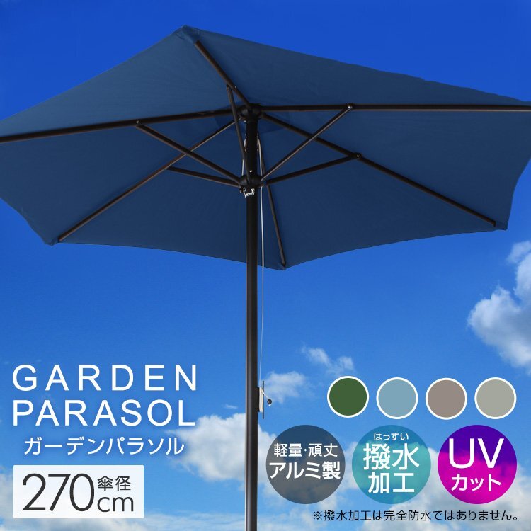 日差しから守るガーデンパラソルです。 バーベキューにピクニックにビアガーデンと晴れた日には欠かせないアイテム! ハンドル式で開閉が簡単! ハンドルをくるくる回るだけなので、女性でも簡単に傘を開くことができます。 パラソルの支柱は2つに分かれるので、持ち運びもラクラク! 水や汚れに強い撥水加工! 雨に濡れても水を弾くので、雨漏れする心配はありません!お手入れもサッと拭くだけで簡単! ※完全防水ではありません。 中に水を入れて使用するパラソルベーススタンド。 ガーデンやベランダでのパラソルの使用でオススメ! 使用後は中の水を抜けば軽くなるので持ち運びにも便利です。 本体は取っ手付きなので持ち運びがラクラク! ポール受けキャップは本体に収納できます。 パラソルスタンド以外にも、のぼり等のスタンドに最適! 【商品仕様】 カラー:グレー オープン時サイズ(約):幅2700×奥行2700×高さ2370mm 支柱径(約)直径40mm 重量(約):4.5kg 材質:ポリエステル、アルミ ●ベース(土台) サイズ(約):幅450×奥行450×高さ270cm 重量(約):1.5kg 水を入れた時の重量(約):21.5kg 対応パラソル(約):直径40mm対応 カラー:ブラック 材質:ポリエチレン他 【注意事項】 ・お客様による組み立て商品です。 ・強風時は破損、転倒などの危険がありますので、ご使用はおやめください。 ・傘生地には撥水加工をしておりますが、完全防水ではありません。 ・同梱されている説明書に一部誤りがございます。パラソル固定用のネジが2個と記載されていますが1個の誤りです。予めご了承ください。 |