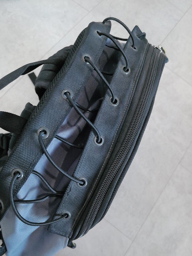 サイズ表記: - 平置き寸法 (採寸の仕方による誤差をご考慮願います。参考程度にお考え下さい。) 縦 49cm 横 46cm(中心部分で計測) マチ 26cm(2ポケット分) (約) |