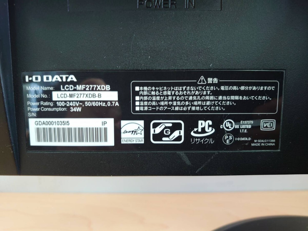 i・o DATA アイ・オーデータ LCD-MF277XBD 27インチモニター 動作確認済み 247 の中古商品になります。