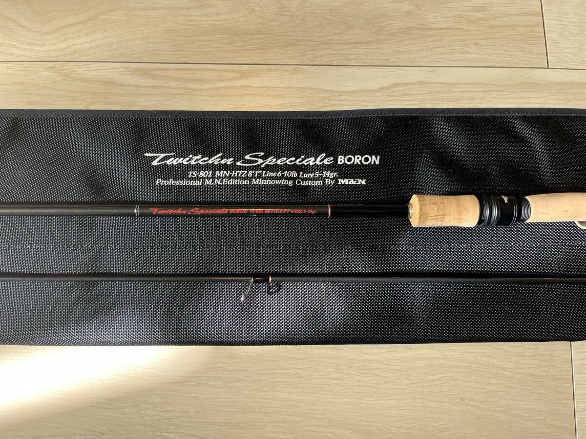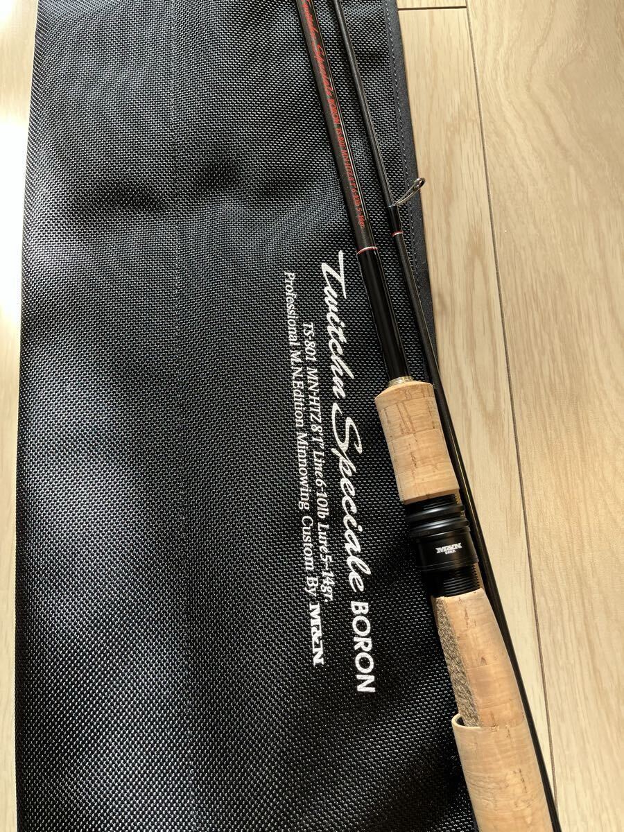 M&N TS-801MN-HTZ になります。新品購入後、一度だけ短時間使用しました。ブランク、グリップに傷や汚れは見当たりません。ガイドスレッドのコーティングにクラックも無くきれいな状態かと思います。
