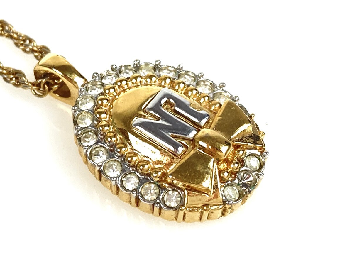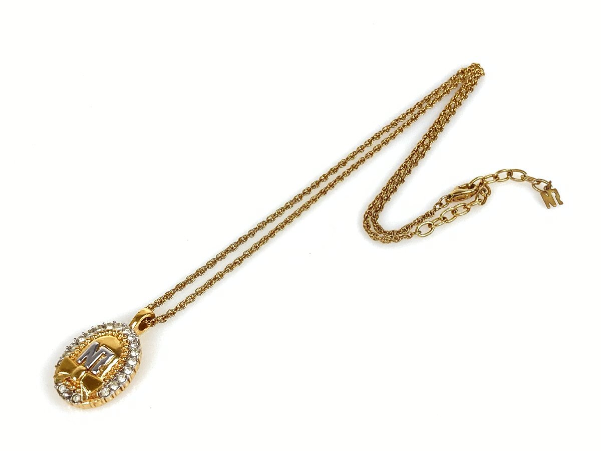 | 商品名 | オーバル型 ロゴ ラインストーン リボン ネックレス |