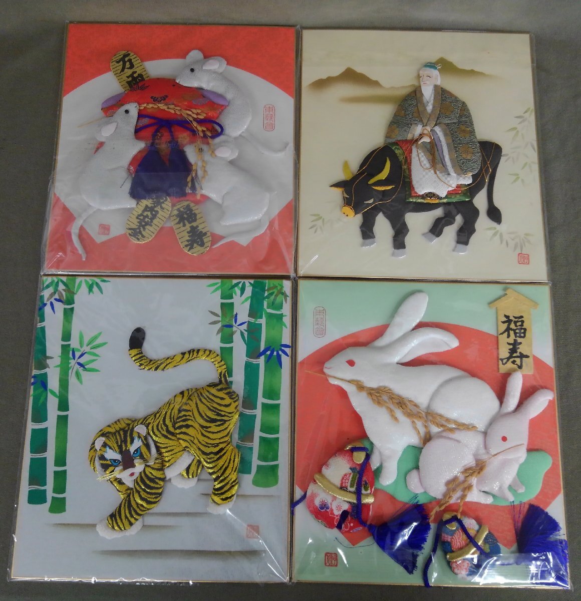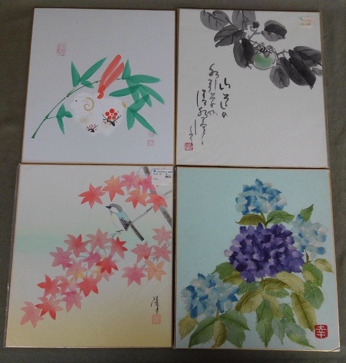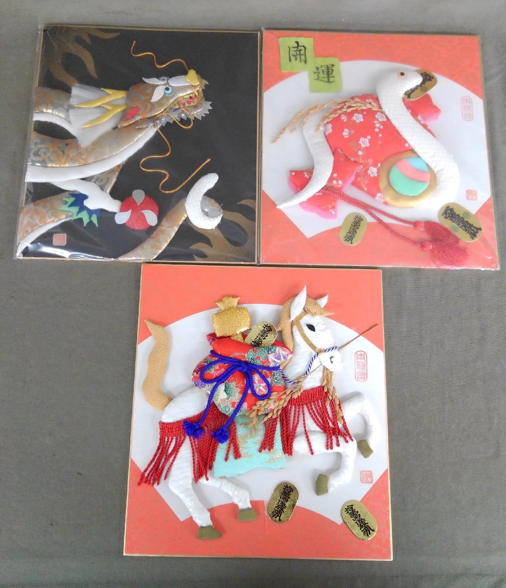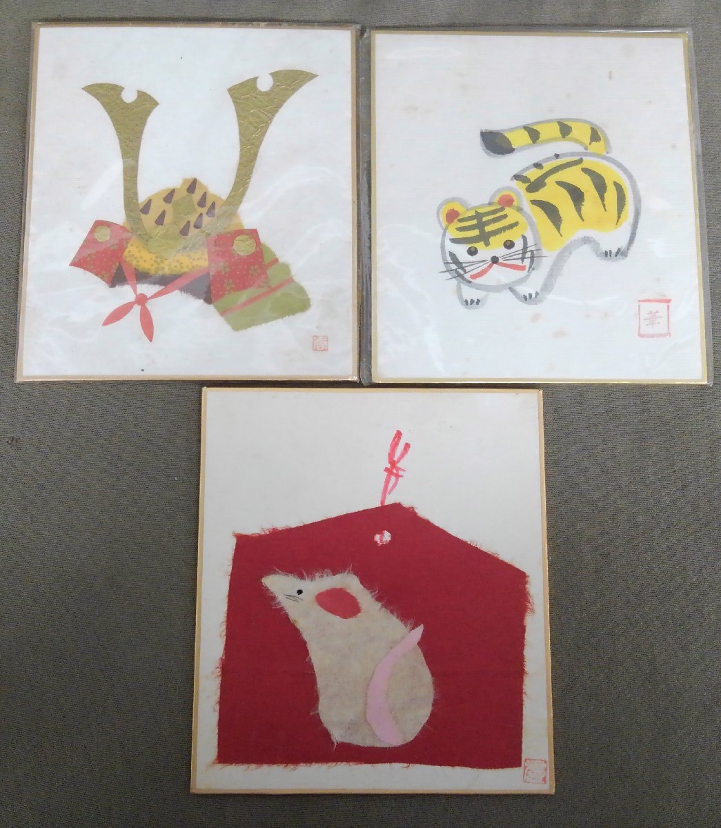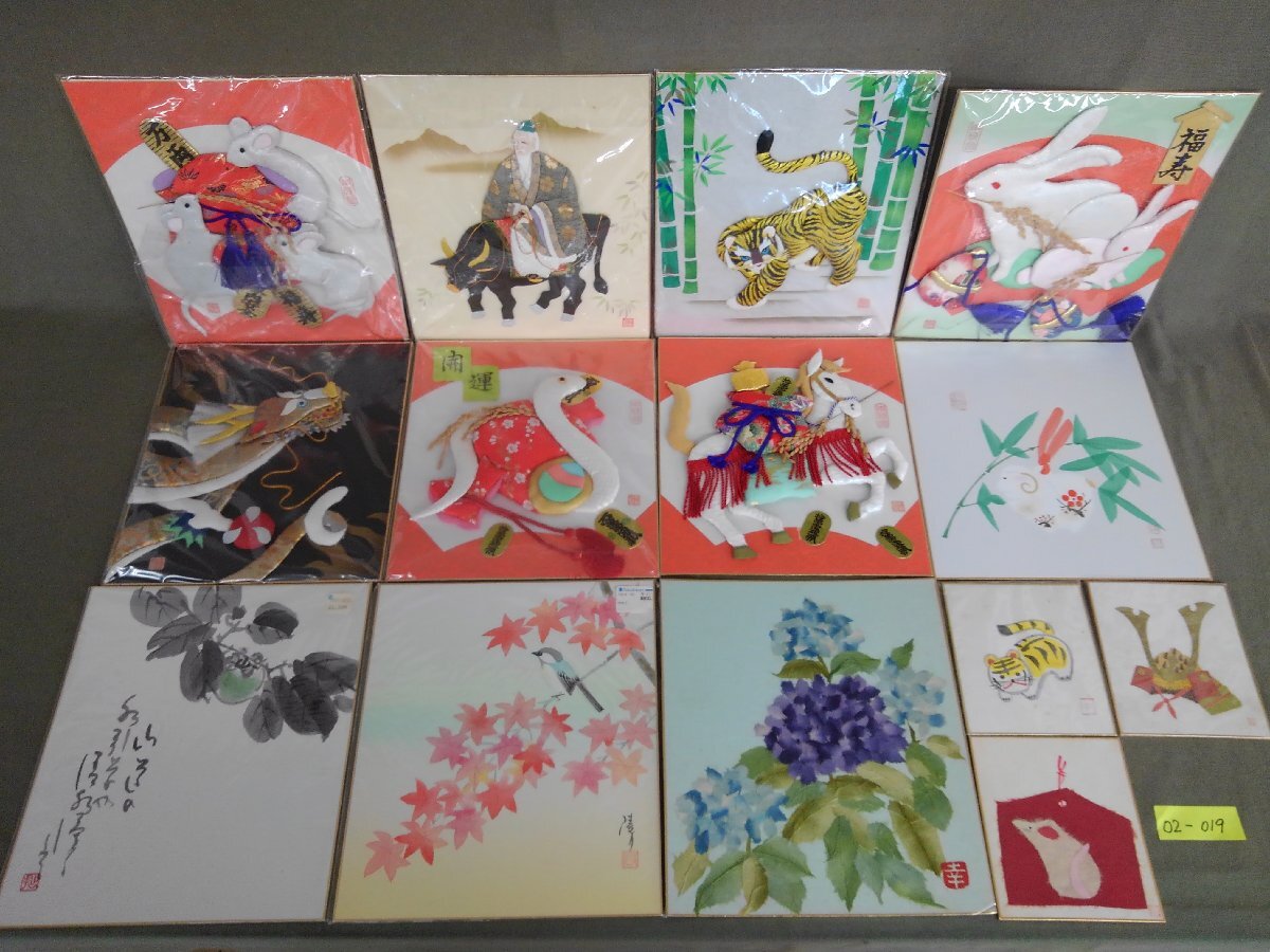 ★02―019★色紙絵 押絵 ちぎり絵 貼り絵 など 14点まとめ 詳細不明 絵画 作品 茶室 茶道具 在銘 落款 古美術 [80]