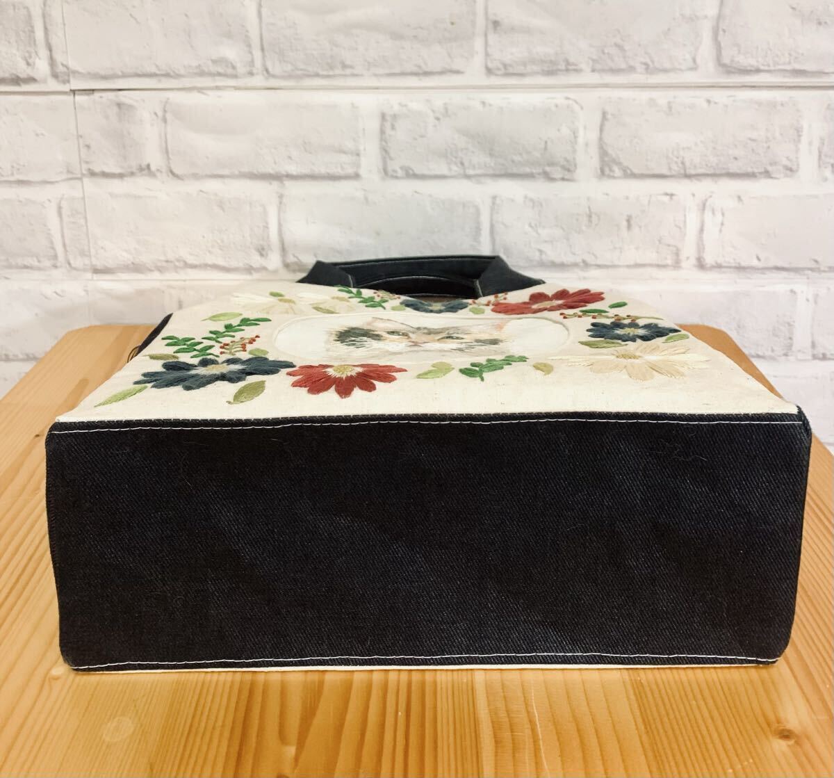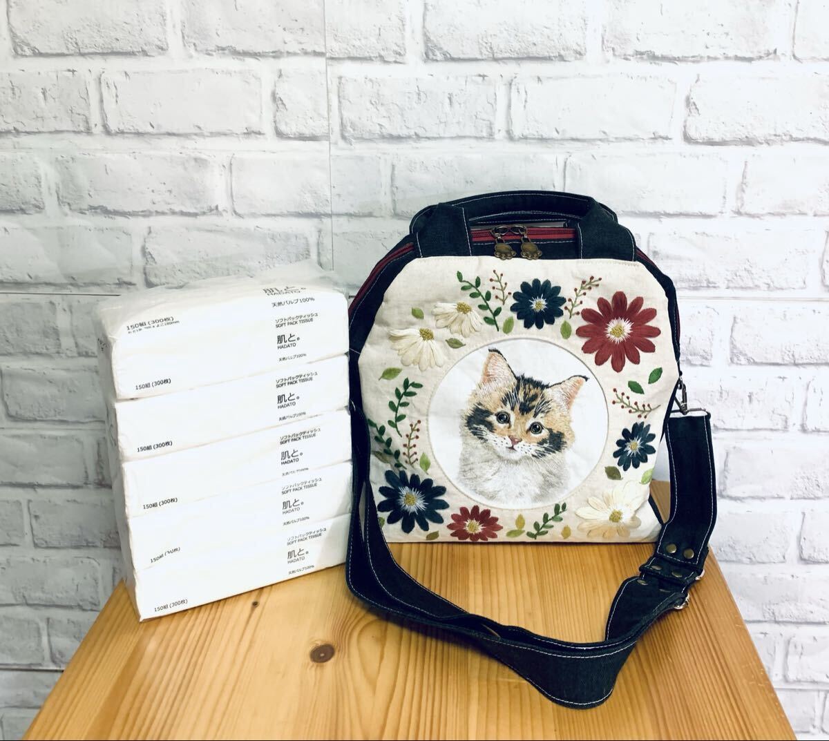 | ご覧いただきありがとうございます 花々に囲まれたにゃんこ刺繍の2wayバッグです♪ ひもは取り外し可能ですので ハンドバッグとして ショルダーバッグとして 用途に合わせて自由にお使いください 入れ口はファスナー開閉です ダブルファスナーにしており ニャンコ手のアジャスターを取り付けています♪ コットンリネンとデニム風コットンのコンビにしてみました♪ 内側はやや厚手のポリエステルを使用しています ポケットは 背面に ファスナーポケット×1 内側にオープンポケット×1 ティッシュペーパーの5P(箱入りではないタイプ)を入れて ファスナーを閉められる たっぷり容量です♪ 画像も載せましたのでご参考までに♪ サイズは以下の通りです (平置きでの計測です 多少の誤差はお許しください) 本体 たて(中央部分) 約 26㎝ よこ(最下部) 約 28㎝ マチ 約10㎝ ショルダーひも(1本付属します) 70㎝~110㎝で可動 ※画像のトルソーは婦人9号サイズです ショルダーひもは 斜め掛けしている画像は最長で 肩掛けしている画像は最短で撮影しております 早いもので気が付けば師走となっておりました 暮れに向け荷物も込み合う時期でもありますので 本年度はこの出品をラストにしようと思います いつも閲覧、ご入札くださる皆々様 一年お世話になりました 誠にありがとうございます ちょっと早いですが よいお年をお迎えくださいね 来年度もコツコツと製作して参りますので よろしくお願い致します お願い ※誠に恐れ入りますが 評価数に於いて新規の方、もしくは新規に準ずる評価件数の方は ご入札前に質問欄よりご連絡ください ご連絡なく入札された場合には 取り消しとさせていただきます ※丁寧にお作りしておりますが プロのように完璧とはいえません ハンドメイドにご理解いただける方のご入札をお待ちしております ※かなり頑張った梱包となります! 簡易な包装や到着時のたたみジワなどはご了承くださいませ ※飼い猫あり 家族に喫煙者あり 細心の注意のもと製作しておりますが 作業スペースが完全な個室ではないため ニオイが全くつかないとは言い切れません ご了承の上でのご入札をお待ちしています ※ノークレーム、ノーリターンにてお願い致します | |||