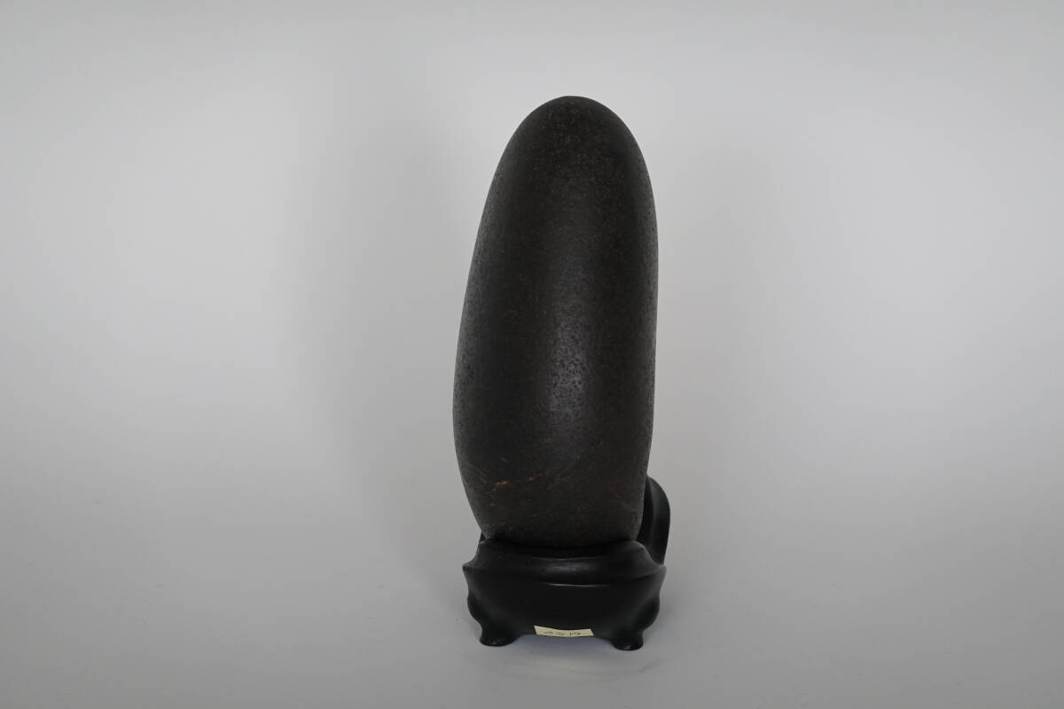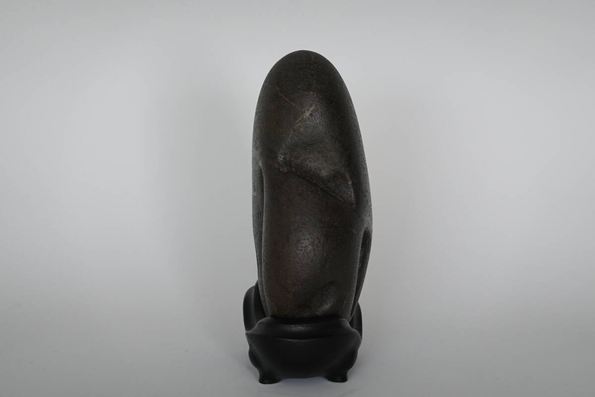 約20年前に北海道の著名な水石家より3万円弱で購入した深みのあるよもぎ色を呈した足寄川石です。抜け石は数あれど、出品石の抜けのサイズ、位置、石全体のフォルムは抜群かと思います。