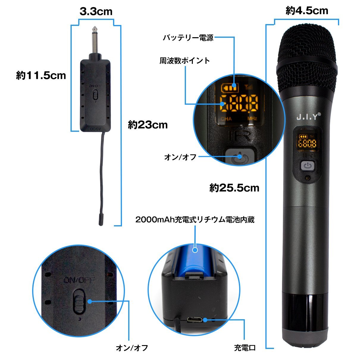 【送料無料】ワイヤレスマイク ハンドマイク 無線 コードレス プロフェッショナル マイク カラオケ グレー 6.5mm 3.5mm アダプター 街宣