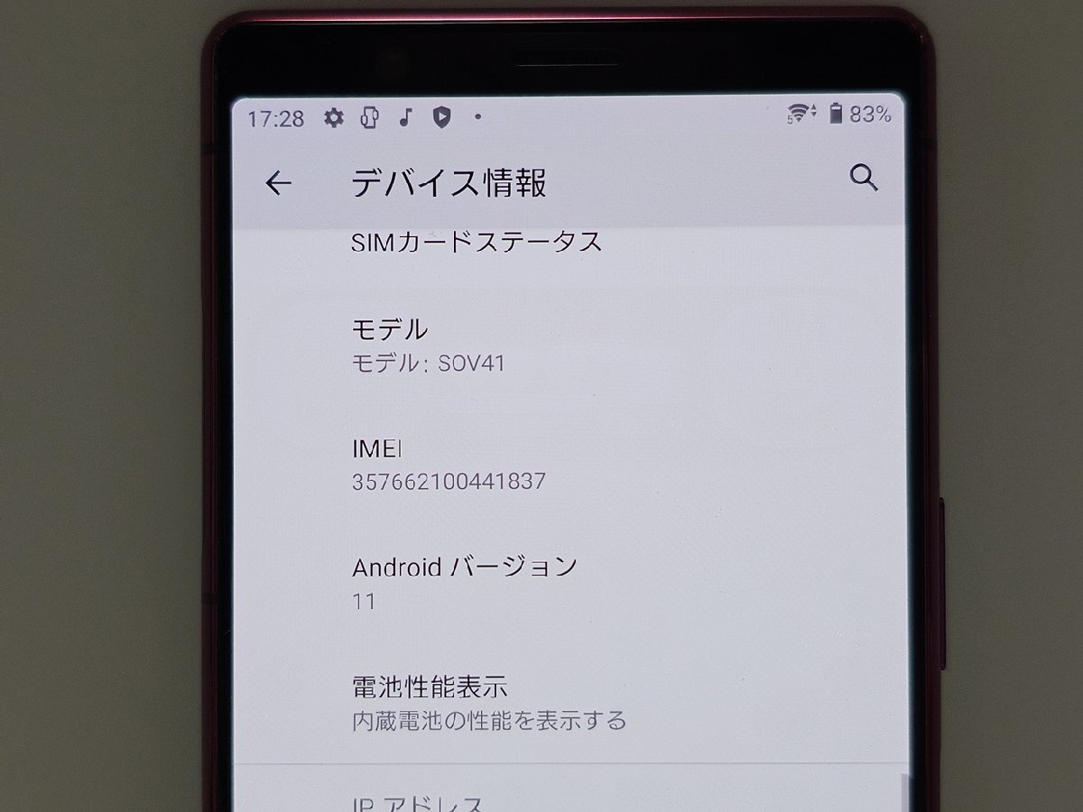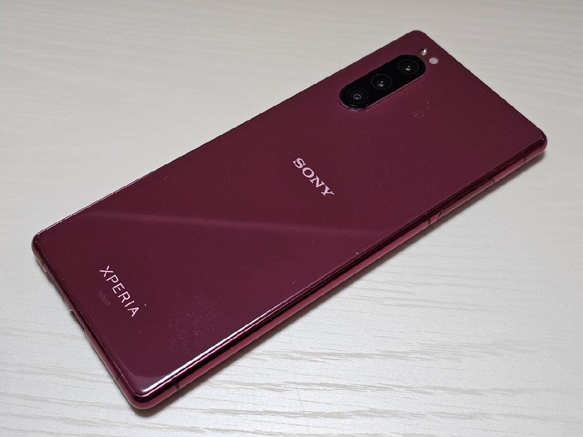 ★【66249WM】 ジャンク au SOV41 SONY Xperia 5 レッド 64GB 1円 ! 1スタ !