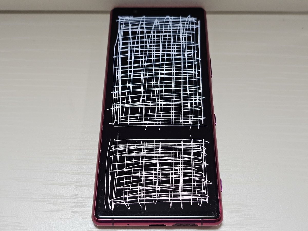 ■不具合箇所 : 画面中央下に横方向のタッチ不良があります。液晶に濃いベージュの画面焼けがあります。アプリ画面の焼け付きが薄く見えます。Youtube動画視聴時に背景が白や明るい色のときに薄く画面焼けが見えます。