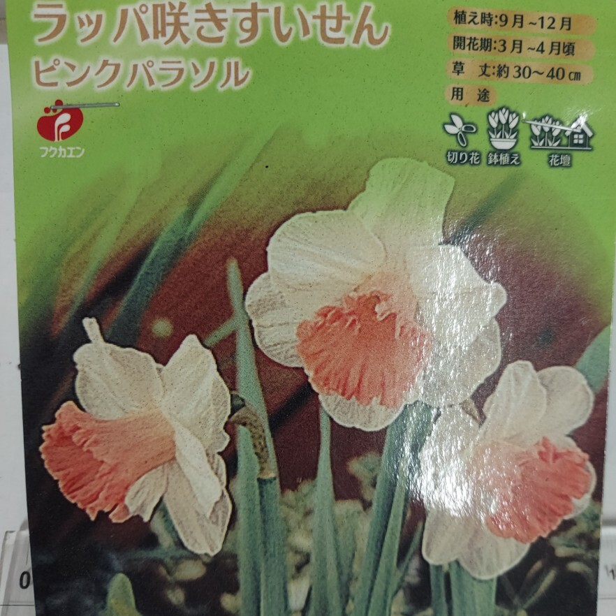 特価 送料無料 福花園種苗 人気品種 花壇、鉢植え、切花に!カップがパラソルの様 ラッパ咲きすいせん ピンクパラソル 2球入り