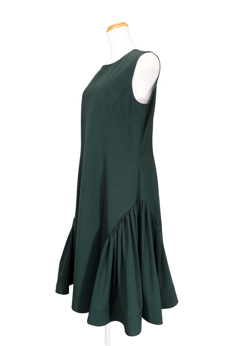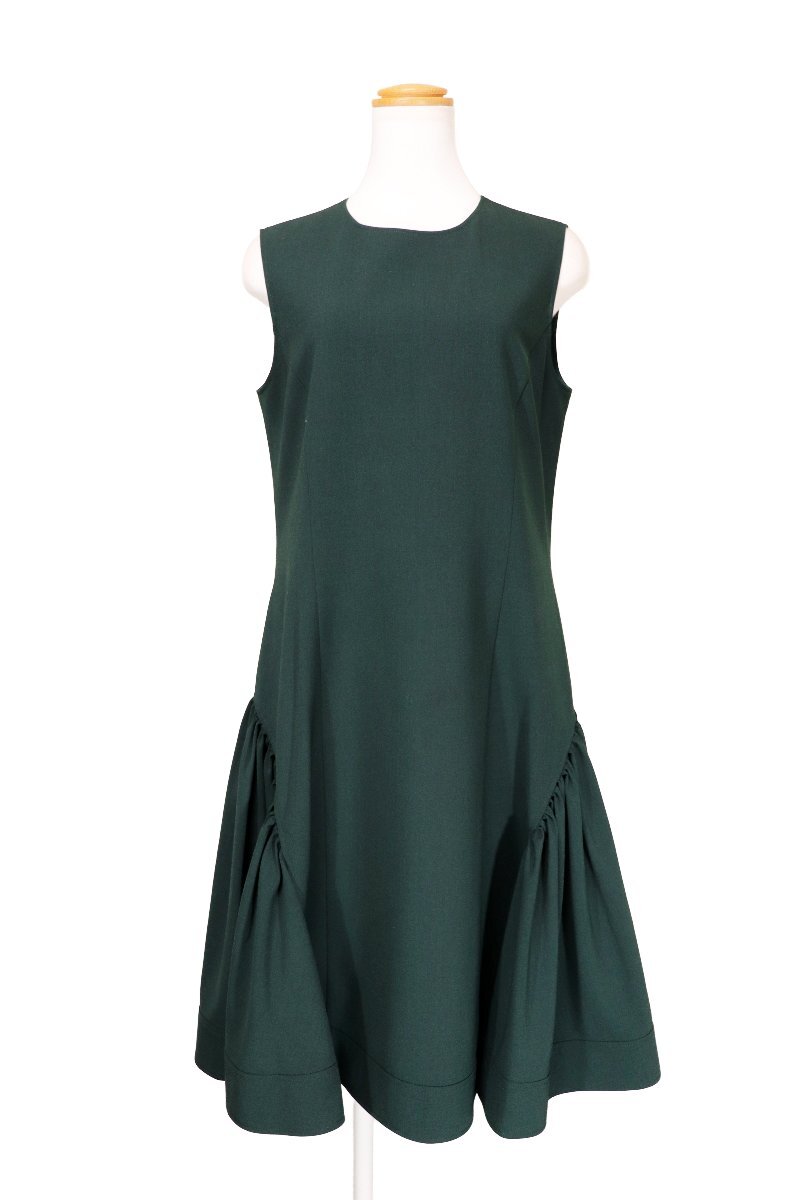 スカート部分両サイドの切り替えギャザーデザインが特徴のワンピ―スです。