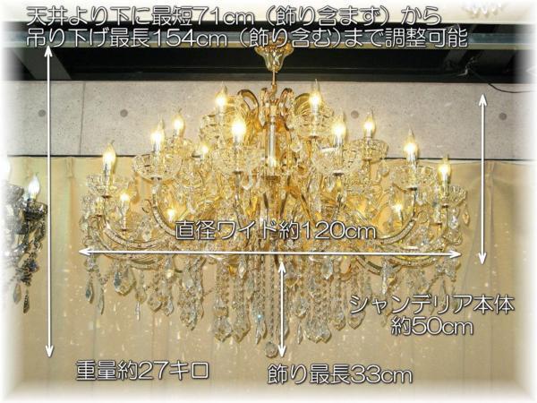 | 商品説明 | ![]() ☆LED電球サービスキャンペーン開催中!☆【送料無料!】★超激安即決!★新品 キャンドル2段21灯 豪華クリスタルシャンデリア 120cmワイドタイプ♪ ●キャンペーン期間中 広角LED電球21灯(¥25200-相当)お付けいたしまして驚きのプライス! ☆LED電球サービスキャンペーン開催中!☆ ※通常電球別売の為、価格記載の電球画像掲載がございますがキャンペーン期間中は無償提供(調光別途¥200-)させて頂いております※ ☆上質水晶ならではの最高の輝きを放つ新品クリスタルシャンデリア ☆添付画像では肉眼で見る本来のクリスタルの輝きをご確認いただけませんが、21灯の電球が上質クリスタル水晶を通し光の屈折で光の持つ本来のカラーをかもし出しダイヤモンドのように輝きながらワット数以上の明るさでお部屋を照らします ☆スタイルは飽きの来ないシンプルなデザインです♪ ☆とても明るく豪華なシャンデリアです ☆シャンデリア本体は調光にも対応しており、お好みの明るさに調整可能です ※調光が必要の場合、調光対応LED1個別途¥200-と汎用調光器が必要です ☆付属電球・・・口金E17キャンドル型・広角LED暖色21灯(明るさ40ワット消費電力4ワット 暖色36Lm/W・白色40Lm/W) ※調光対応LED1個別途¥200- ※白色LEDご希望の場合はご注文後お申し付けください 商品画像は暖色LEDを装着し撮影しております ☆取り付けに関しましては引掛けシーリング対応不可で直付けタイプになります ☆リビング等に最適なゴージャスクリスタルシャンデリアを是非この機会に! サイズ・高さシャンデリア本体(飾り部分除く)約50cm 化粧チェーンで最長154cmまで調整可能 直径ワイド約120cm 重量約27キロです ※154センチ以上必要の場合はご注文後お申し付けください ![]() |
