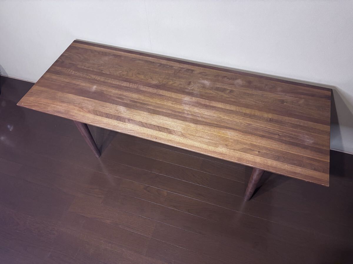MASTERWALのLINE Sofa TABLEです。 良い材で出来ており高級感があります。天板表面に汚れや色ムラがあります。メンテナンスをしていただければよりきれいになると思います。 写真でご確認の上ノークレーム、ノーリターンをご理解いただける方のみ入札下さい。 全国家財おまかせ便Cランクでお送りします。(例:東京まで7740円) サイズ 幅120cm x 奥行き45cm x 高さ43cm |