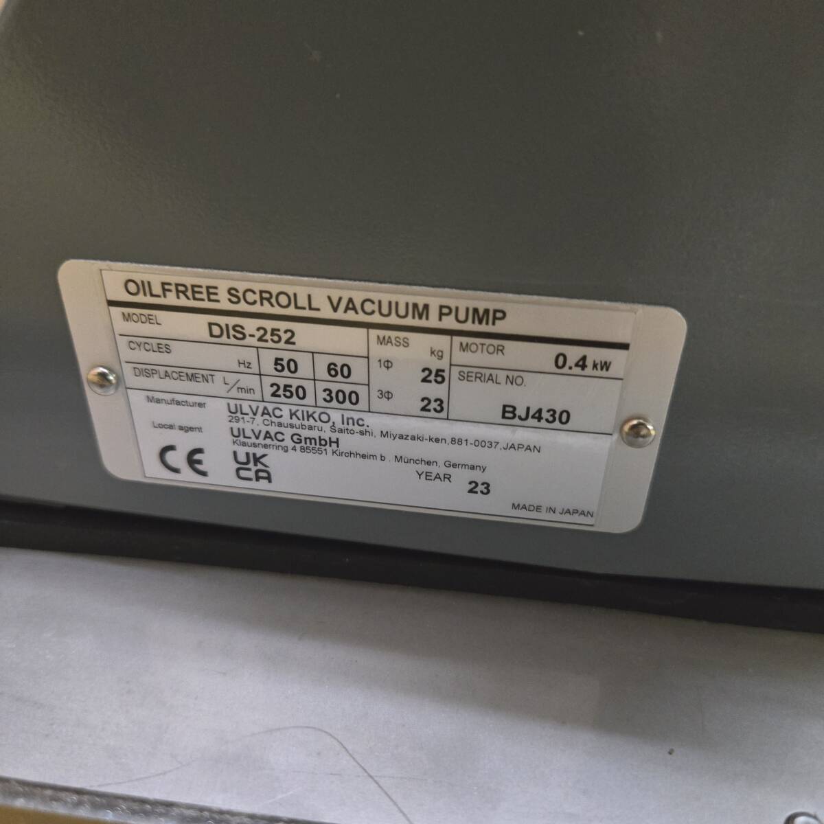 ★☆*5j029 ULVAC アルバック スクロール型ドライ真空ポンプ DIS-252 2023年製 オイルフリースクロールバキュームポンプ ジャンク☆★