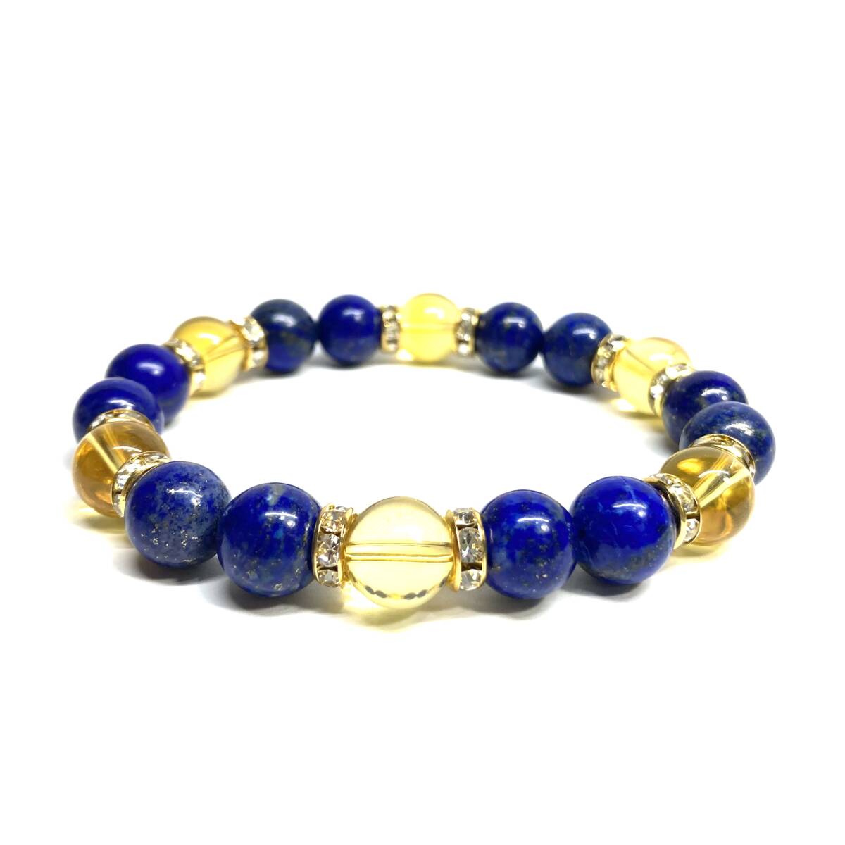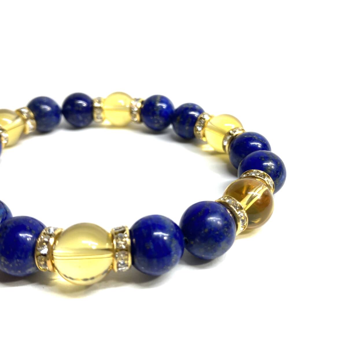 ラピスラズリ&シトリン パワーストーン ブレスレット 天然石ブレス (ゴールド) 10mm メンズ・レディース 金運 ☆