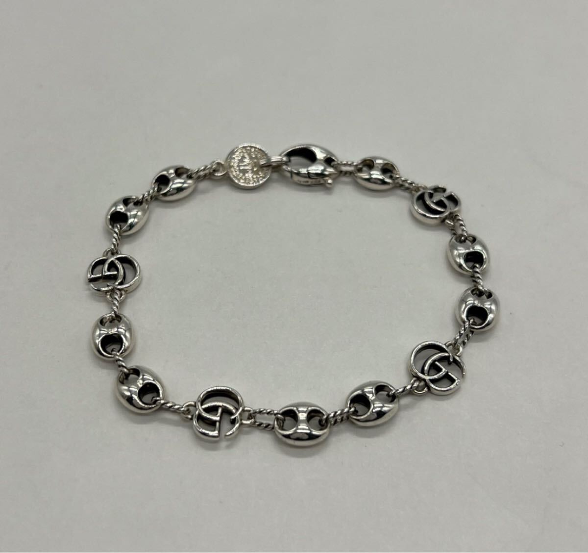 マリーナチェーンとGGマーモントのデザインで構成されたブレスレットは、一目でグッチと分かる存在感がございます。
