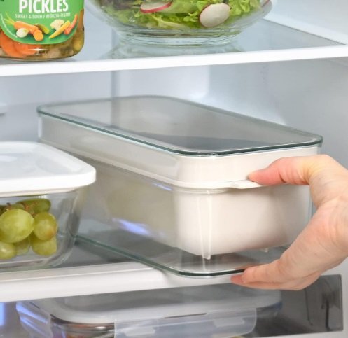 ガラスのような透明外容器に入っているので、ぬかの状態やどのくらい水分が出ているかすぐに確認する事ができます。 |