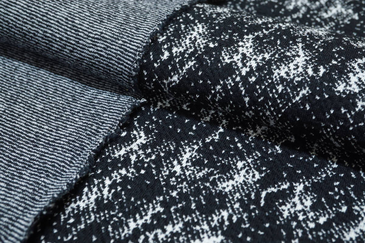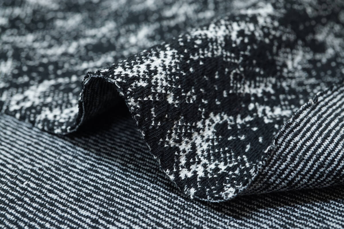 モノトーン幾何学柄調のジャガード織ニット生地の出品でございます。