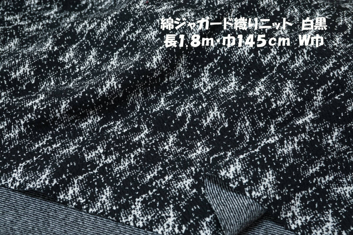 綿・ポリウレタン混、微厚、しっとりソフト系、2way方向に伸縮性、色調:白×黒でございます。