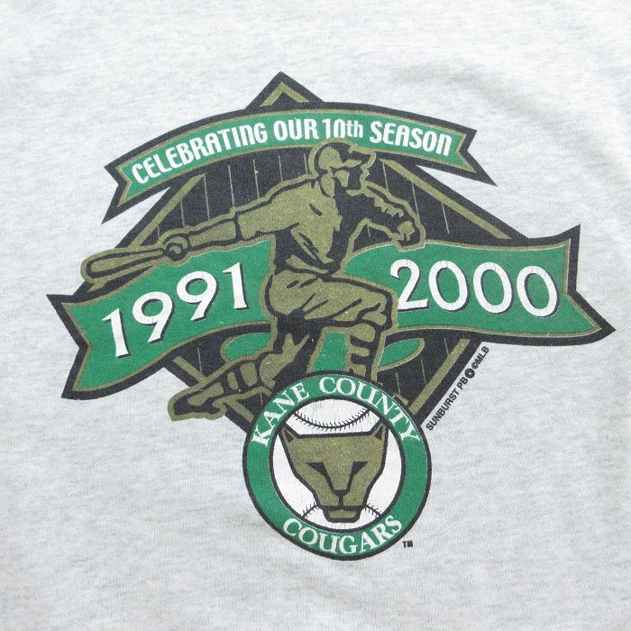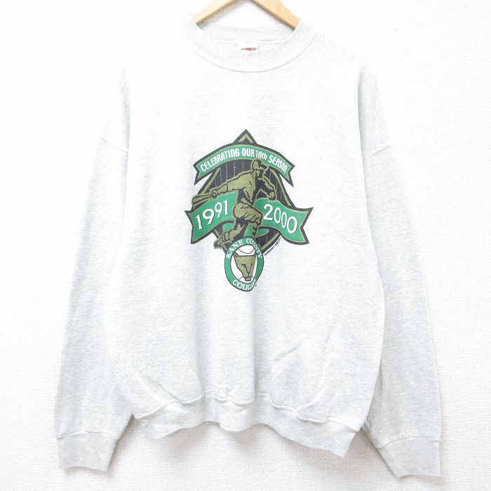 【商品名】 XL★古着 フルーツオブザルーム 長袖 スウェット メンズ 00年代 00s MLB ケーンカウンティクーカーズ クルーネック 薄グレー 霜降り メジャーリーグ ベースボール 野球