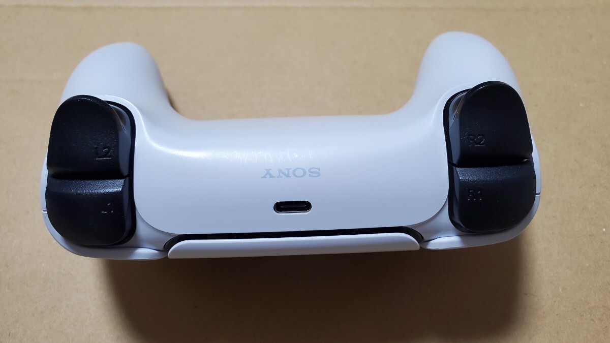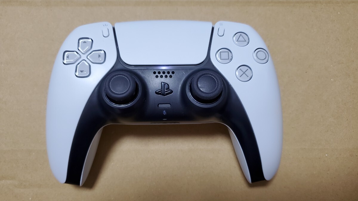 PS5の純正コントローラーになります。ゲームプレイや充電など確認できましたが右スティックがへたり始めています。メンテ、修理ベースでノークレームノーリターンになります。