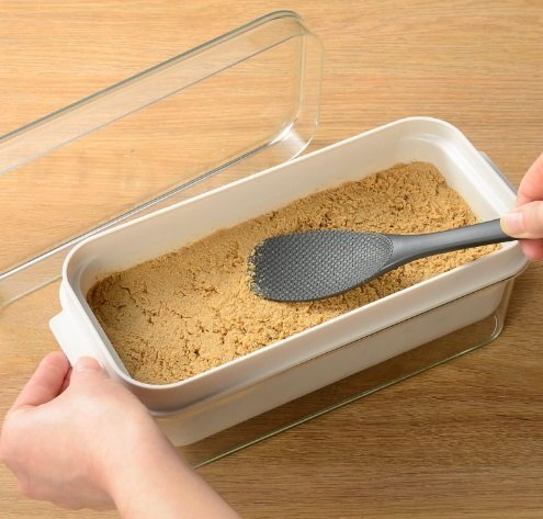 ガラスのような透明外容器に入っているので、ぬかの状態やどのくらい水分が出ているかすぐに確認する事ができます。 |