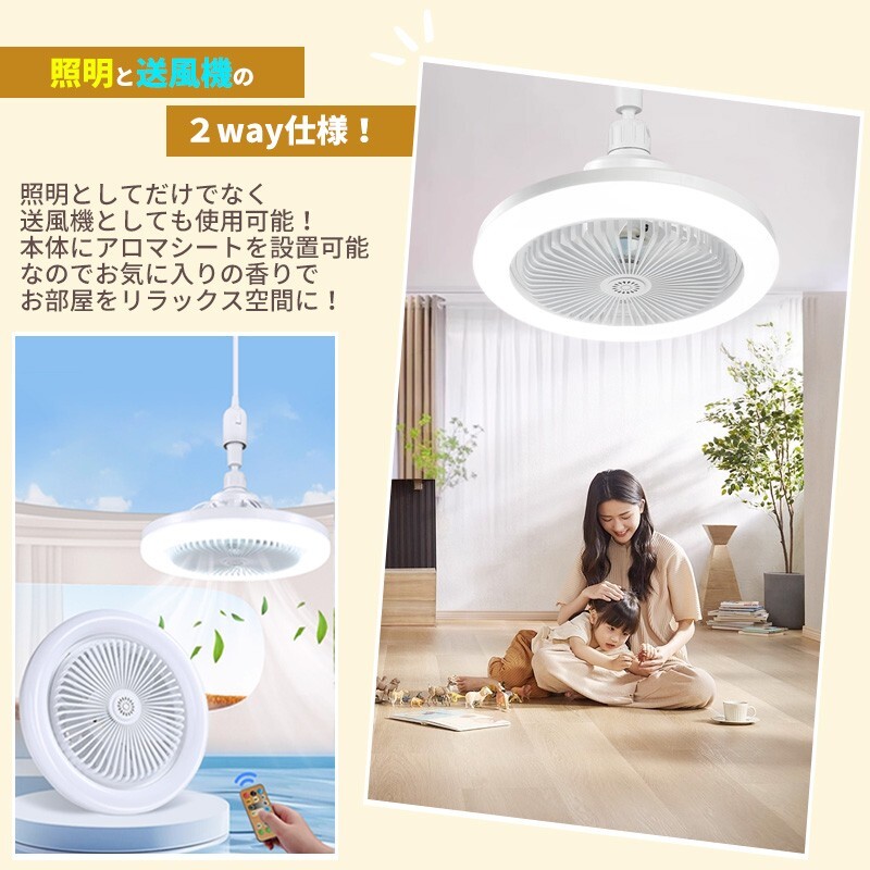 シーリングファンライト LEDライト シーリングライト アロマ 口金 E26 E27 サーキュレーター 照明器具 リモコン付き 風量調節 天井 LED
