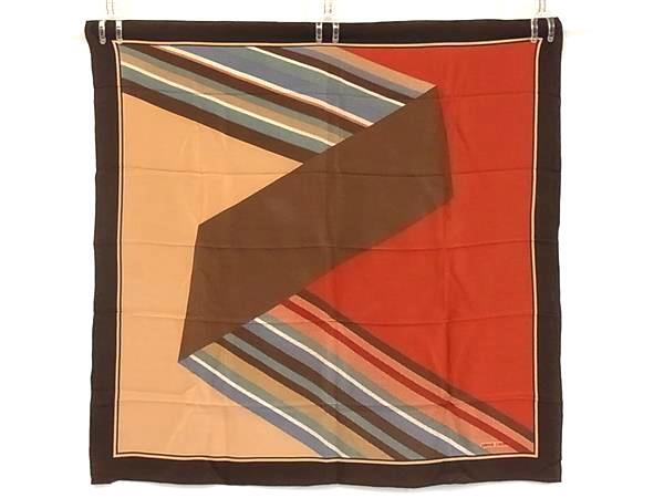 ■美品■ pierre cardin ピエールカルダン シルク100% スカーフ ストール ショール ブラウン系×マルチカラー DI5649