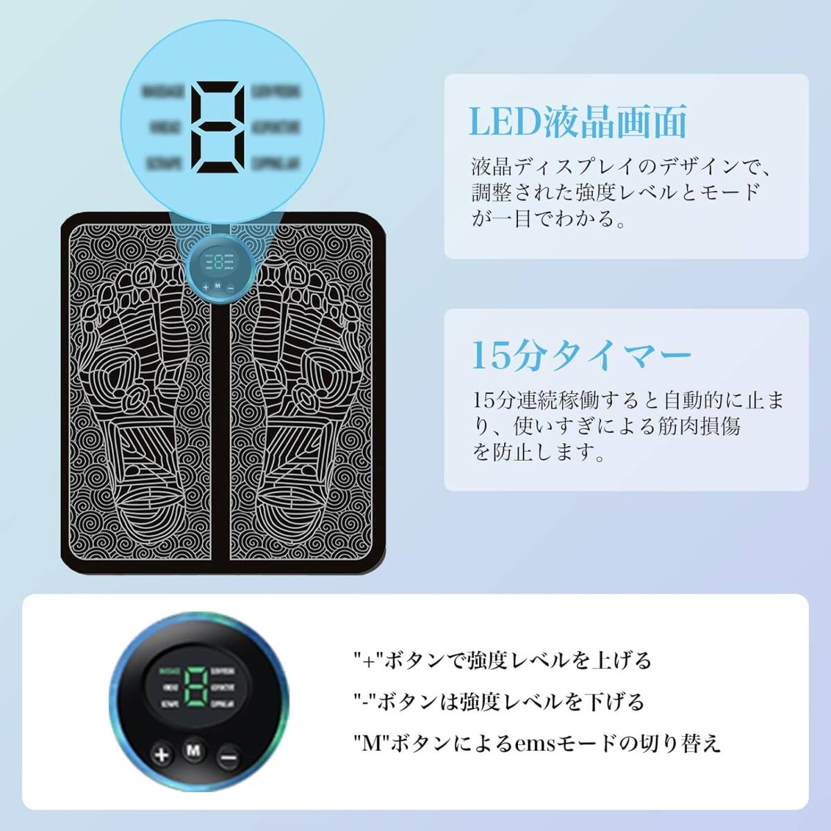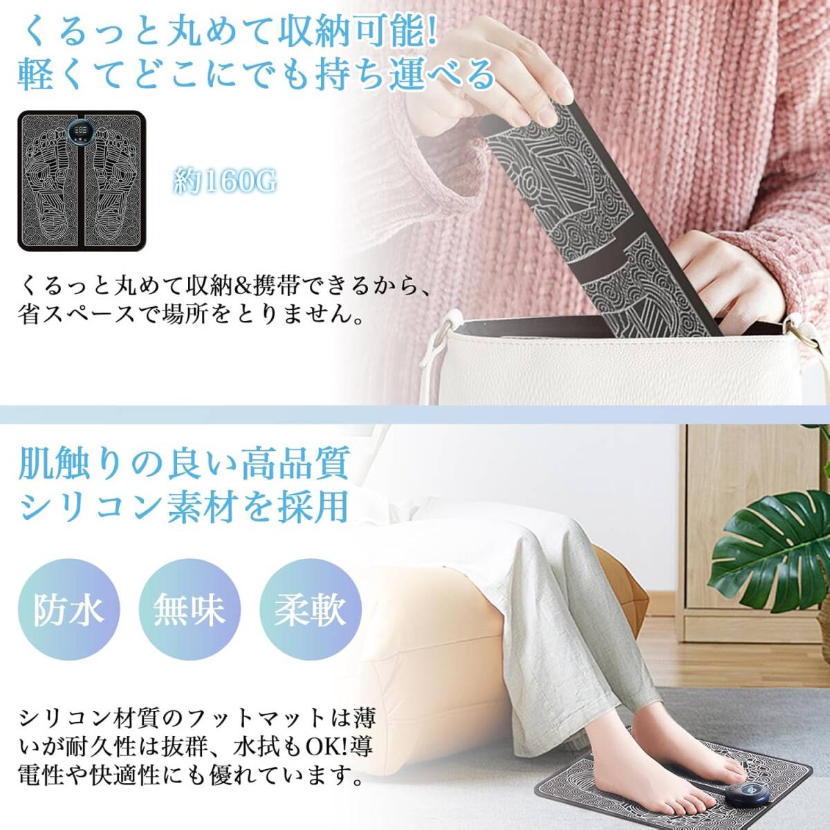 | 持ち運びに便利:約210gと軽量でコンパクト。軽量化にした薄いパッドだから、くるくる巻けば簡単に持ち運び可能。 充電式:充電池式で経済的。一回の充電で約90分連続でご使用いただけます。無音作動だから、オフィスでも気軽に使用できる。 シリコン材質:シリコン材質のフットマットが登場!従来のEMS足裹の素材はPUで、折りたたむとしわができやすくて壊れやすい。 使い方も簡単で:使い方は簡単だし、毎日寝る前に15分使用してます、エステに行く必要もなくなったかなしっかりと効果を実感できています。 高級なプレゼント:自分へのご褒美だけではなく、家族や親友へのプレゼントにも最適。L59 |