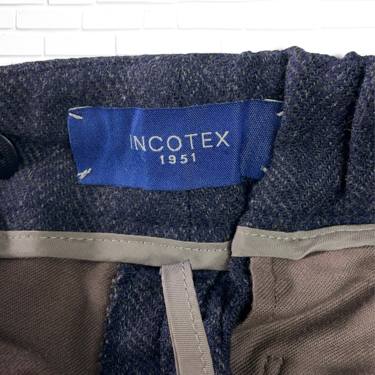 INCOTEX インコテックス ウール 100% ヘリンボーン ツイード イージー パンツ スラックス 紺 ネイビー レディース 38 ◆日本製◆ 2335L◇