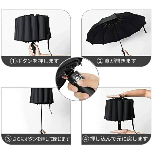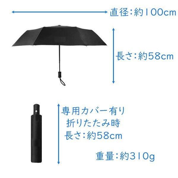 | 商品説明 | シンプルな黒 ブラック メンズ レディース を問わず男女兼用で使える ワンタッチ 自動開閉の折りたたみ傘です 超撥水加工されているので雨傘としてはもちろん 遮光率99%なので日傘としてもOK 310gと軽量で持ち運びも安心