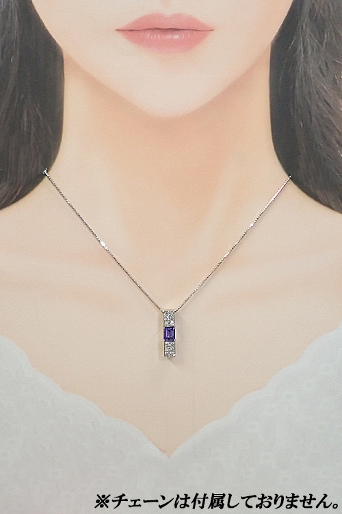 コメント色鮮やかなパープリッシュブルーに心惹かれる、クールなタンザナイトのペンダントトップです。上下には見栄えの良いサイズのメレダイヤモンドがあしらわれており、キラキラとラグジュアリーな輝きを放ちます。