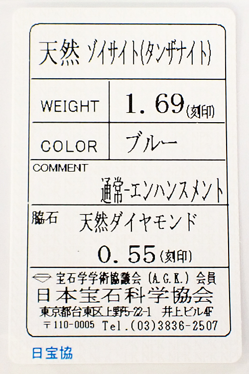 タンザナイト色:濃いパープリッシュブルーの色合い