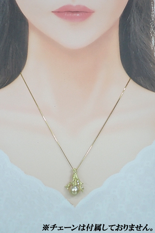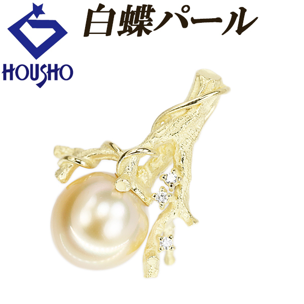 商品名 白蝶真珠(南洋真珠) ペンダントトップ ダイヤモンド K18イエローゴールド 木 枝 植物 ボタニカル 梨地 マット ツヤ消し