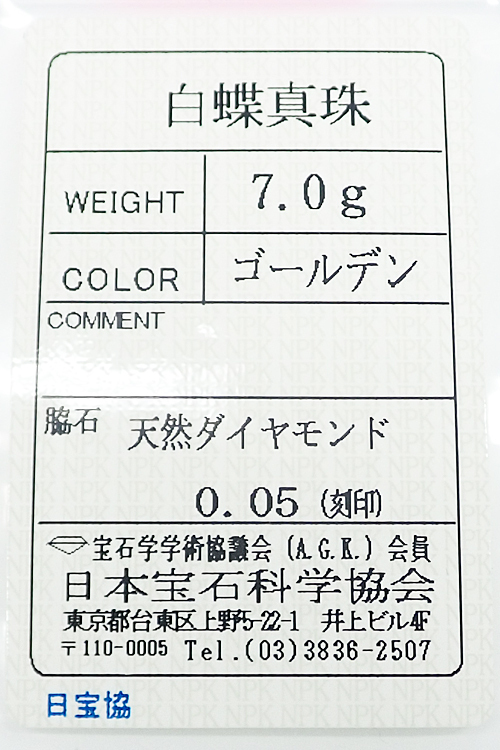 付属品 日本宝石科学協会ソーティング