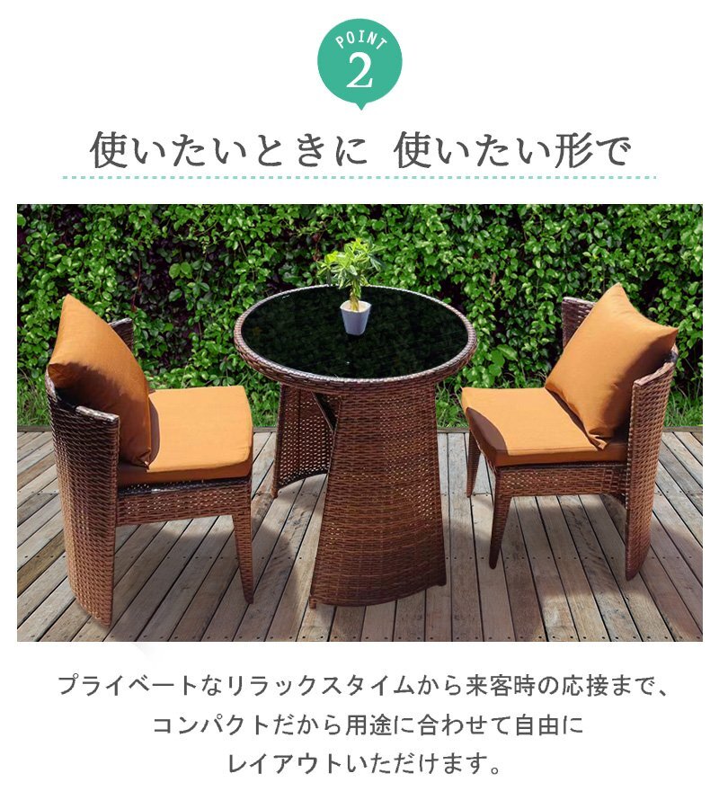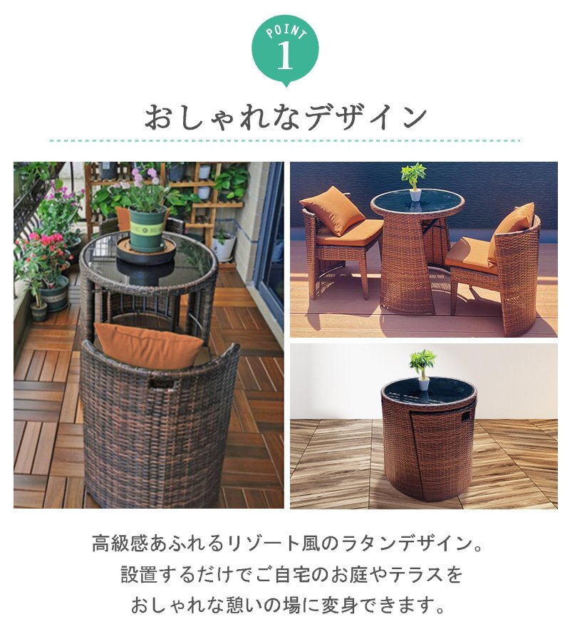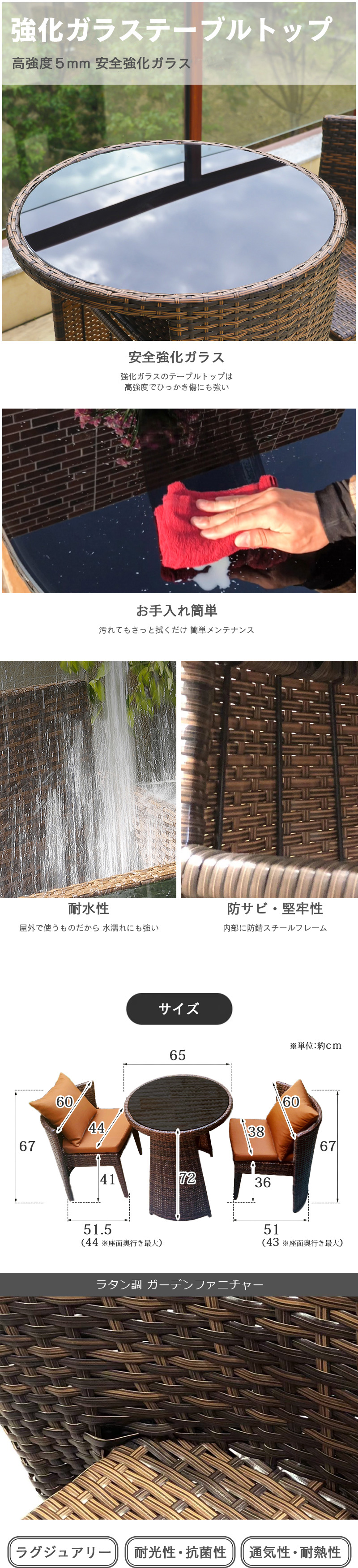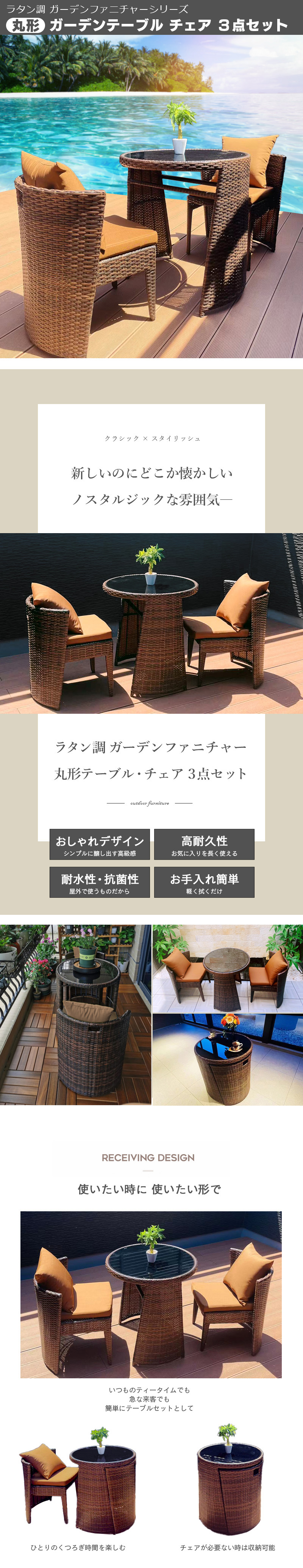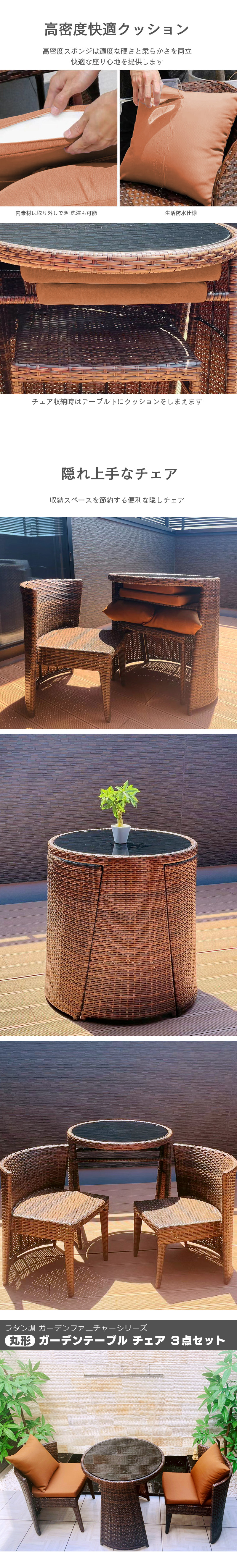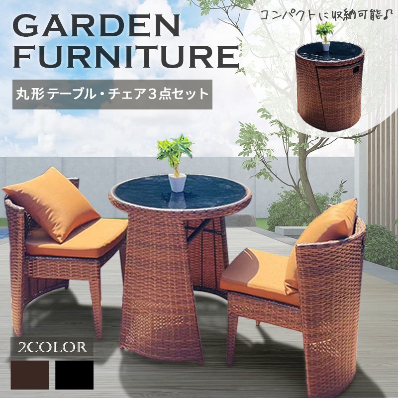 【ラタン調 ガーデンファニチャー 丸形 3点 セット】