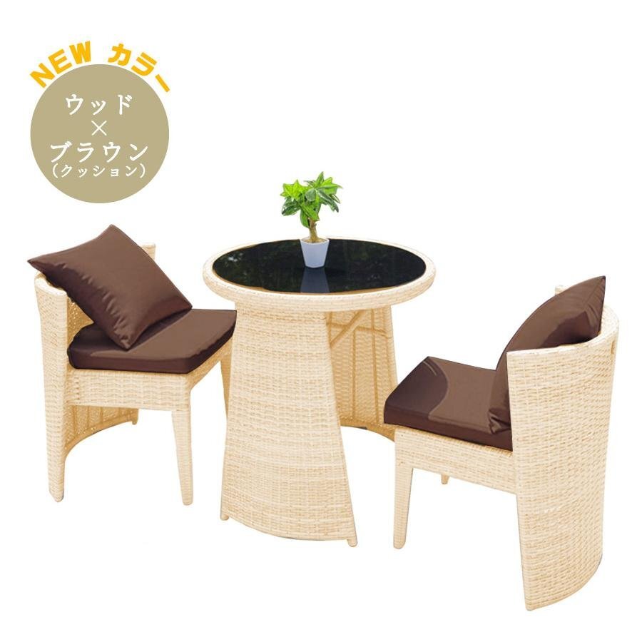 新色追加【本州・四国送料無料】ガーデンファニチャー 2人掛け 丸形 テーブル チェア3点セット(テーブル×1、チェア×2) ウッド調 [04D]