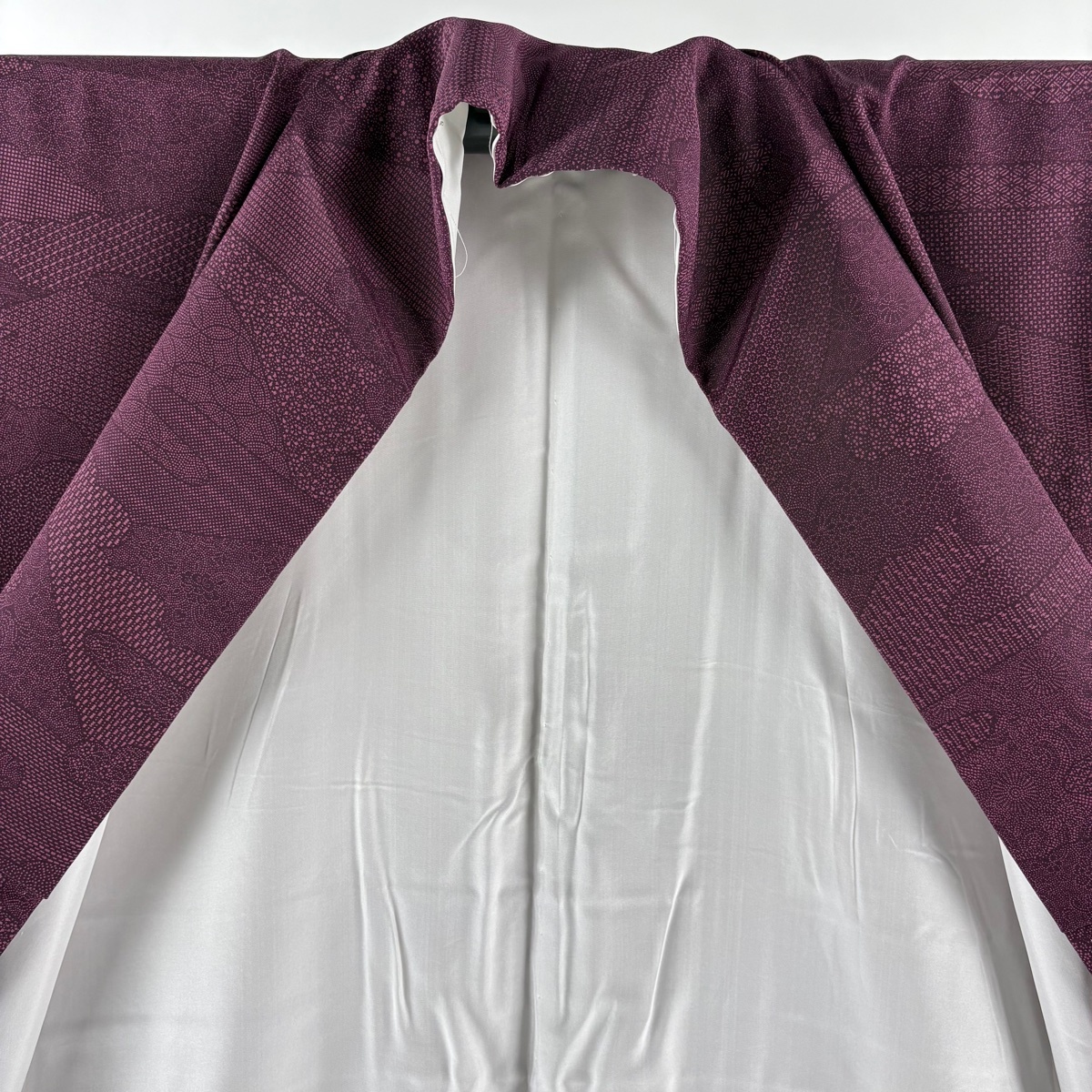 | 江戸小紋 美品 逸品 人間国宝 中村勇二郎 落款 寄せ柄 ヱ霞 紫 袷 身丈159.5 裄丈65 M 正絹 【中古】 |